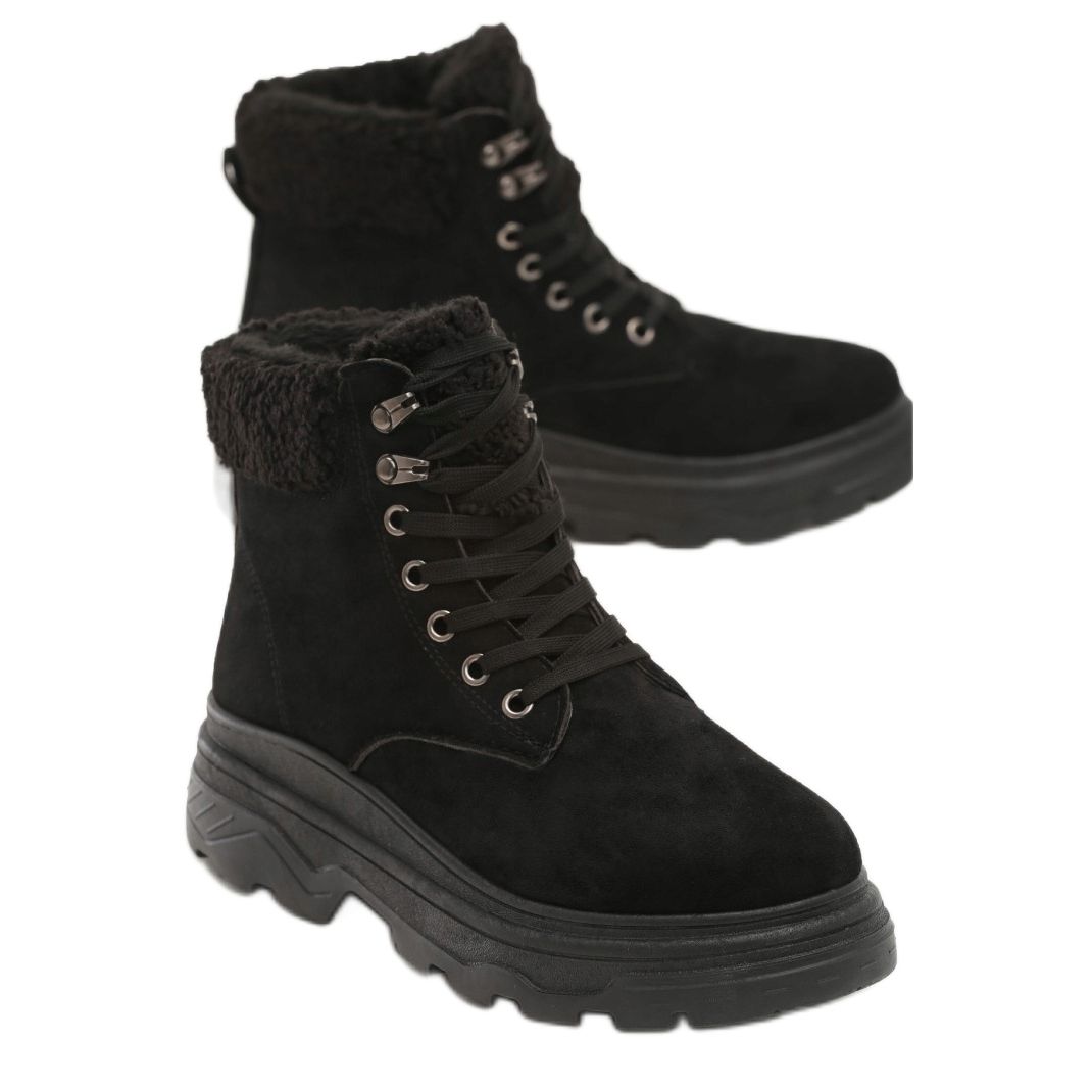 Fabriquées en daim écologique de haute qualité, les bottes Vices sont non seulement à la mode, mais également respectueuses de l'environnement. Une isolation supplémentaire les rend parfaites pour les conditions hivernales, protégeant vos pieds du froid. La partie supérieure de la tige finie en imitation peau de mouton ajoute du charme et du style, soulignant leur caractère unique.