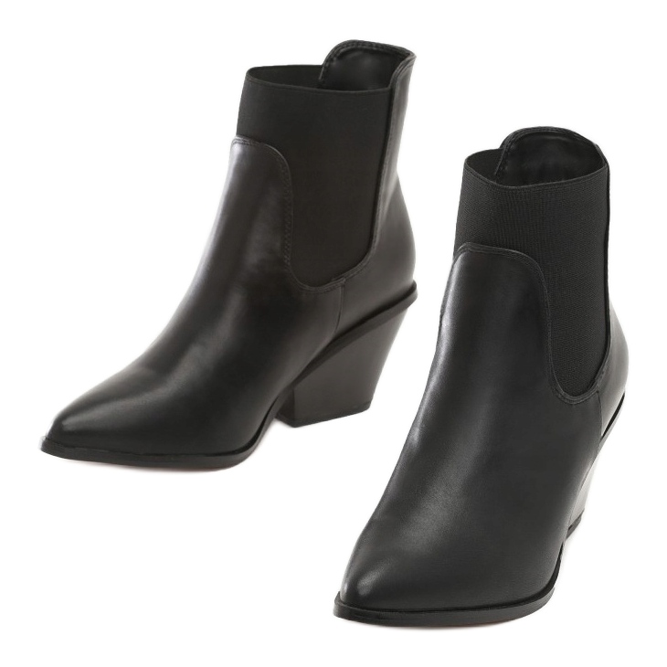 Les bottes sont fabriquées en cuir écologique de haute qualité, ce qui les rend à la fois élégantes et respectueuses de l'environnement. Des inserts élastiques sont présents sur le devant et sur les côtés qui facilitent l'enfilage et le retrait et assurent un ajustement parfait au pied. Le bout pointu ajoute de l'élégance et un caractère moderne aux chaussures.