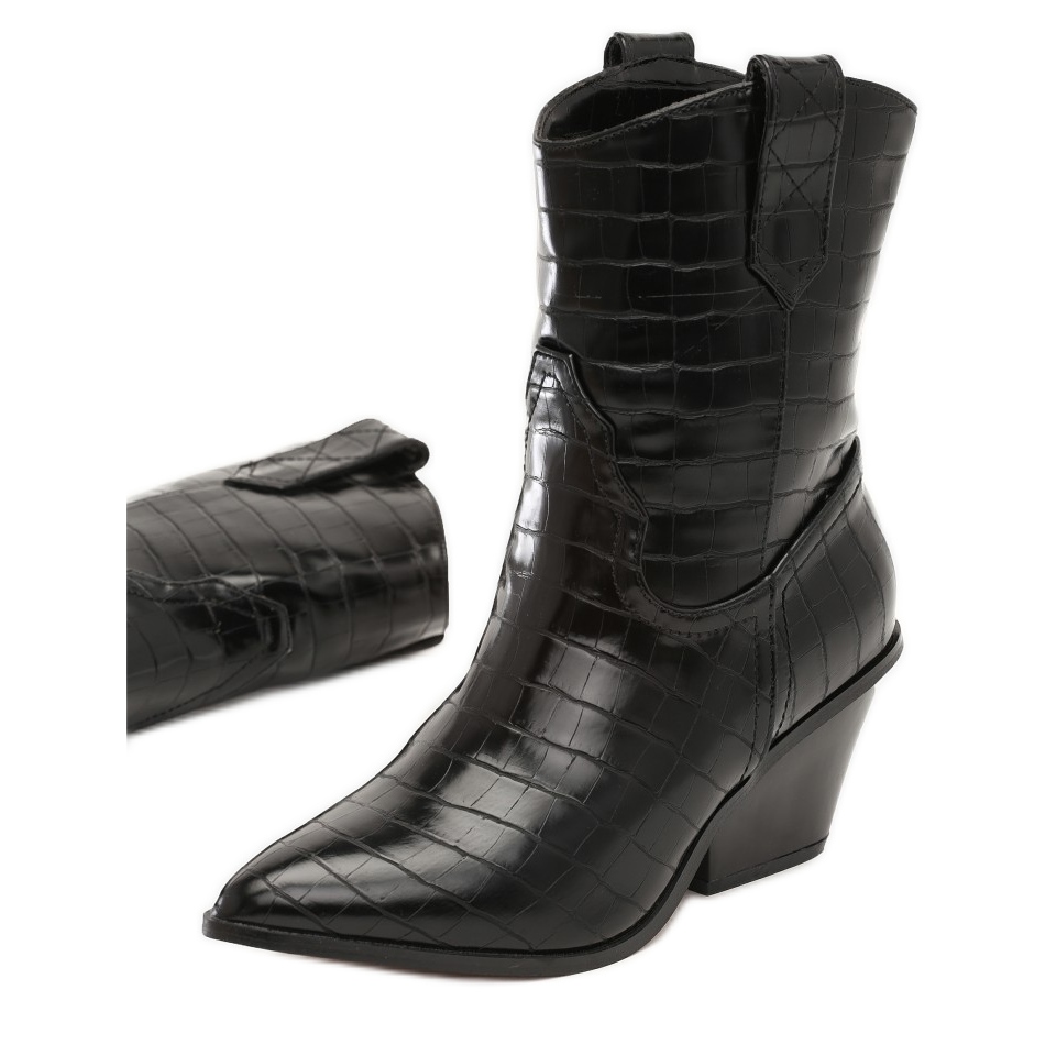 Découvrez un style et un confort extraordinaires avec les bottes de cowboy Vices 8498-38 en noir. Ces élégantes bottines à talon conique sont le choix parfait pour les femmes qui souhaitent allier look tendance et confort. Fabriquées en éco-cuir de haute qualité, les bottes de cowboy ont un gaufrage original imitant la peau de crocodile, qui ajoute du caractère et un style unique.