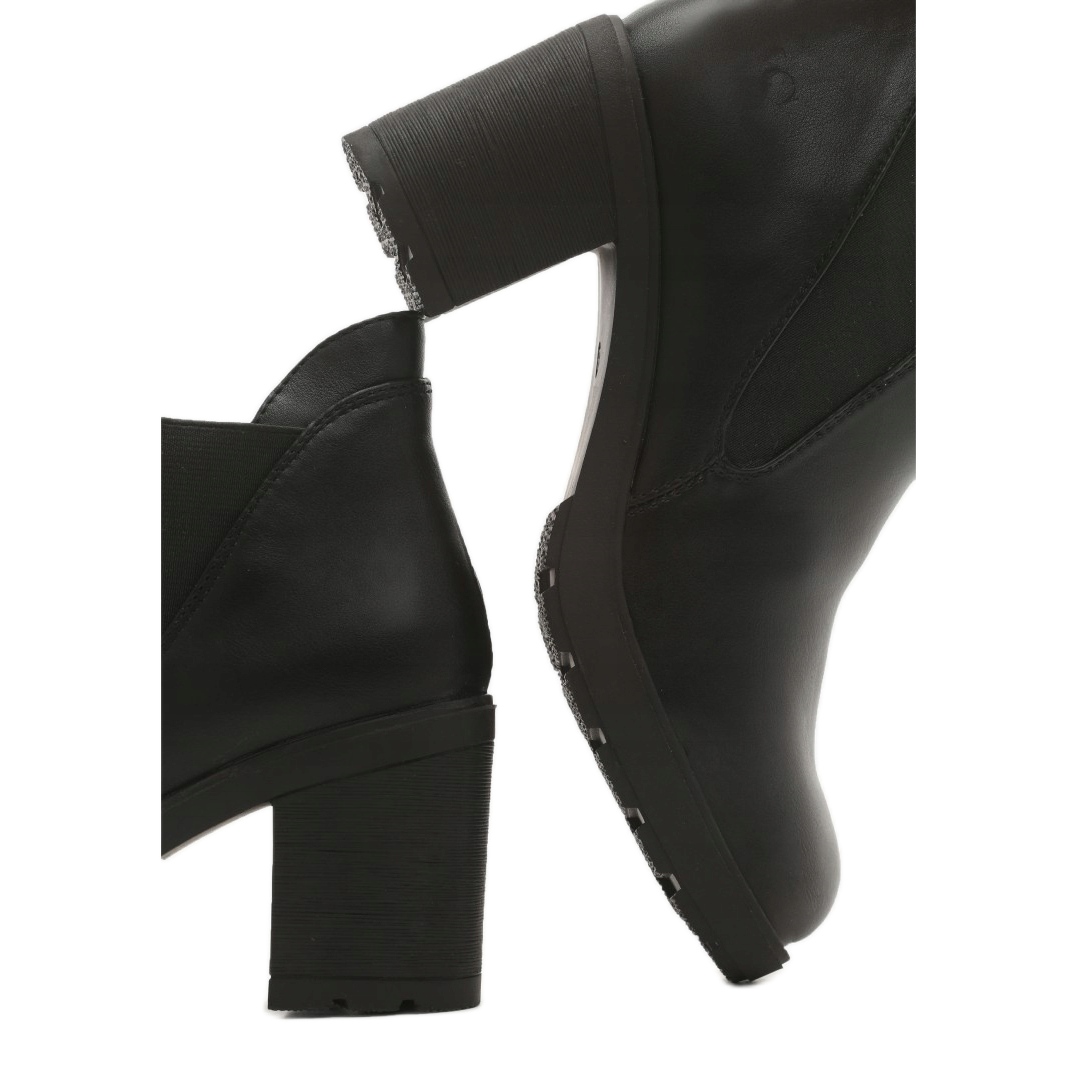 La tige des bottes est en cuir écologique de haute qualité, ce qui les rend respectueuses de l'environnement. Grâce aux inserts élastiques des deux côtés de la tige, les enfiler et les enlever devient simple et rapide, ce qui sera apprécié par toutes les femmes occupées. Un avantage supplémentaire est une isolation légère, qui offre confort et chaleur pendant les journées les plus froides.
