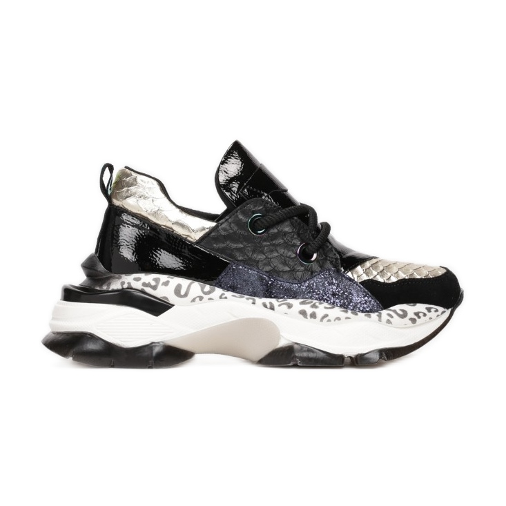 Les baskets Vices 8556-38 noires avec des accents multicolores sont le choix parfait pour les femmes à la recherche de chaussures de sport à la mode et confortables. Ces baskets à lacets avec tige cheville se distinguent par un design original qui attire le regard grâce à divers empiècements de différentes couleurs et textures.