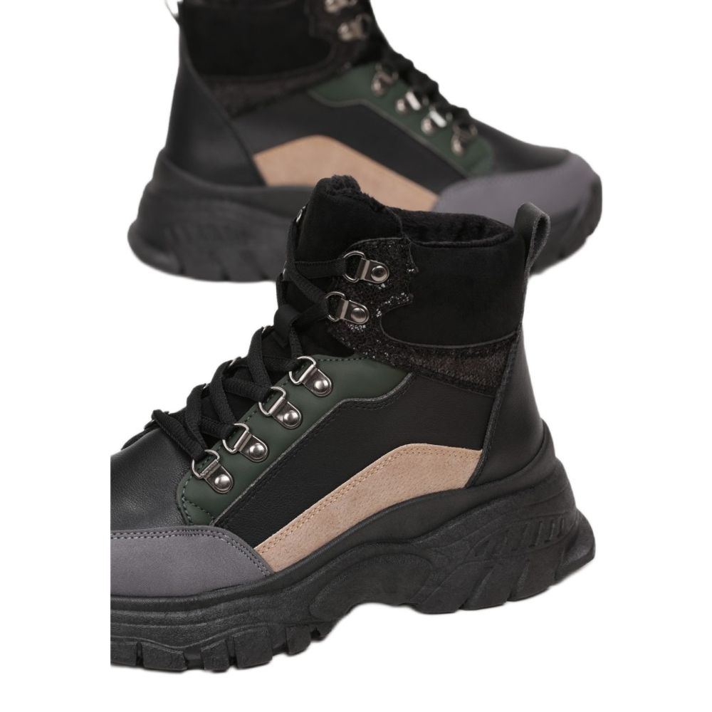 Les baskets Vices 8600-133 noires avec des accents beiges sont un choix parfait pour les femmes qui apprécient la combinaison de style et de confort. Ces chaussures de sport arrivant au-dessus de la cheville se distinguent par une tige brillante, qui leur confère un caractère moderne et en fait un complément parfait aux différents styles d'automne.