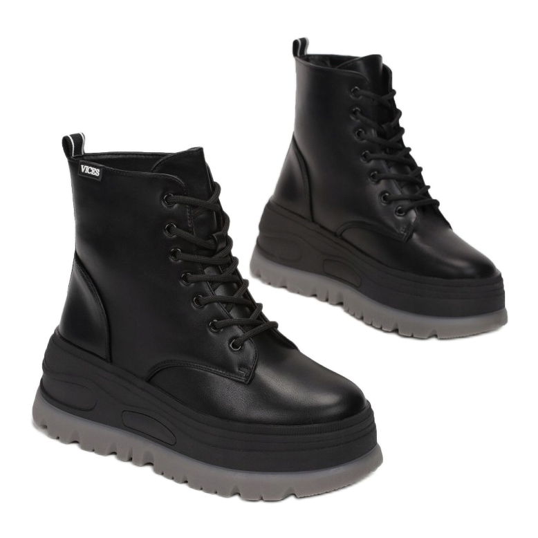 Découvrez le confort et le style avec les bottines Vices 8603-1A-38 dans une couleur noire classique. Ces chaussures à lacets sont le choix parfait au quotidien, alliant design tendance et fonctionnalité. La tige est fabriquée dans un matériau écologique semblable au cuir, ce qui rend les chaussures non seulement esthétiques, mais également respectueuses de l'environnement.