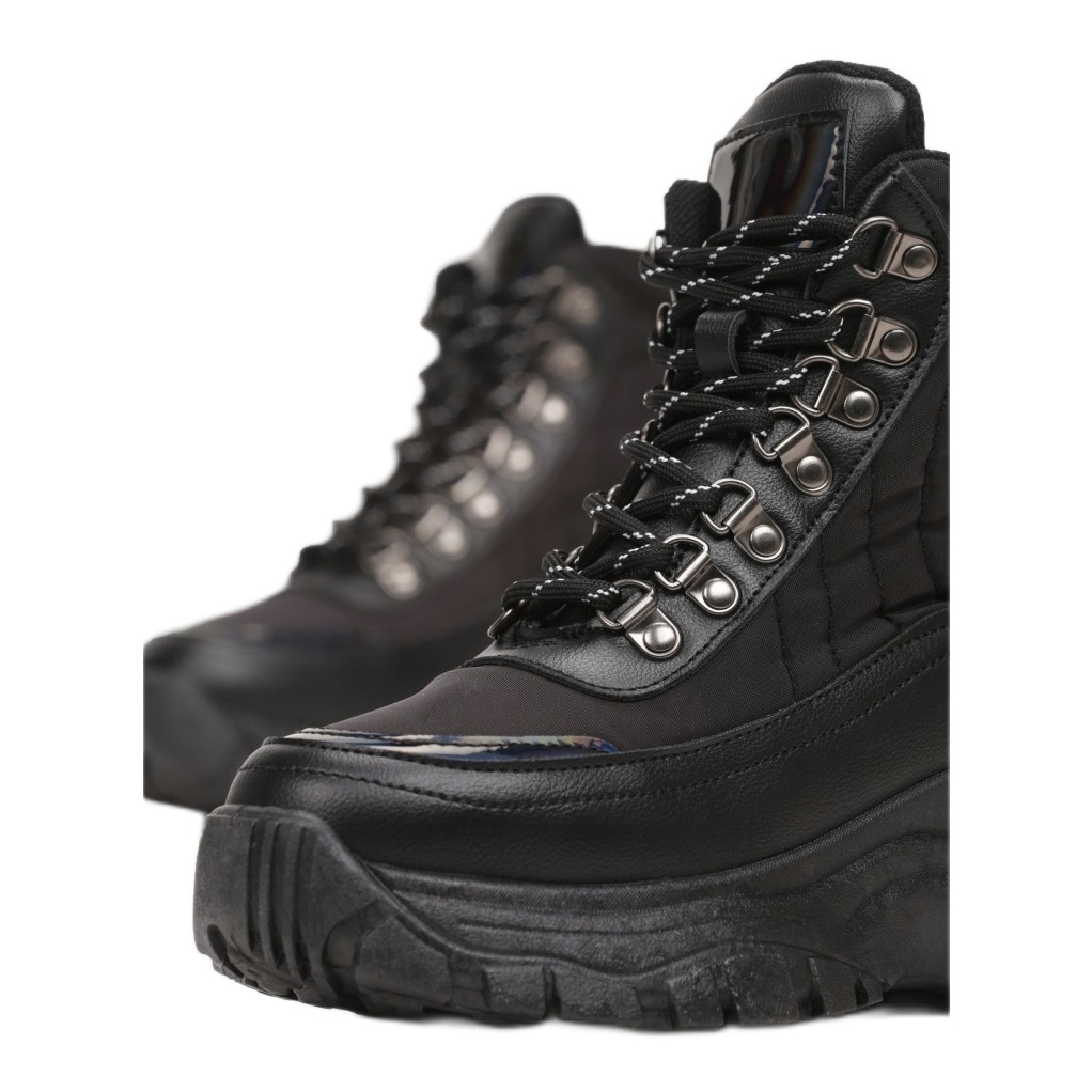 Les baskets se caractérisent par un bout rond et une construction haute, ce qui leur donne du caractère et offre un soutien adéquat au pied. L'isolation interne en fait un choix idéal pour les journées plus froides, garantissant chaleur et confort. La hauteur de la plateforme de 5,5 cm ajoute un charme subtil et les couleurs noires les permettent de s'adapter à de nombreux styles.