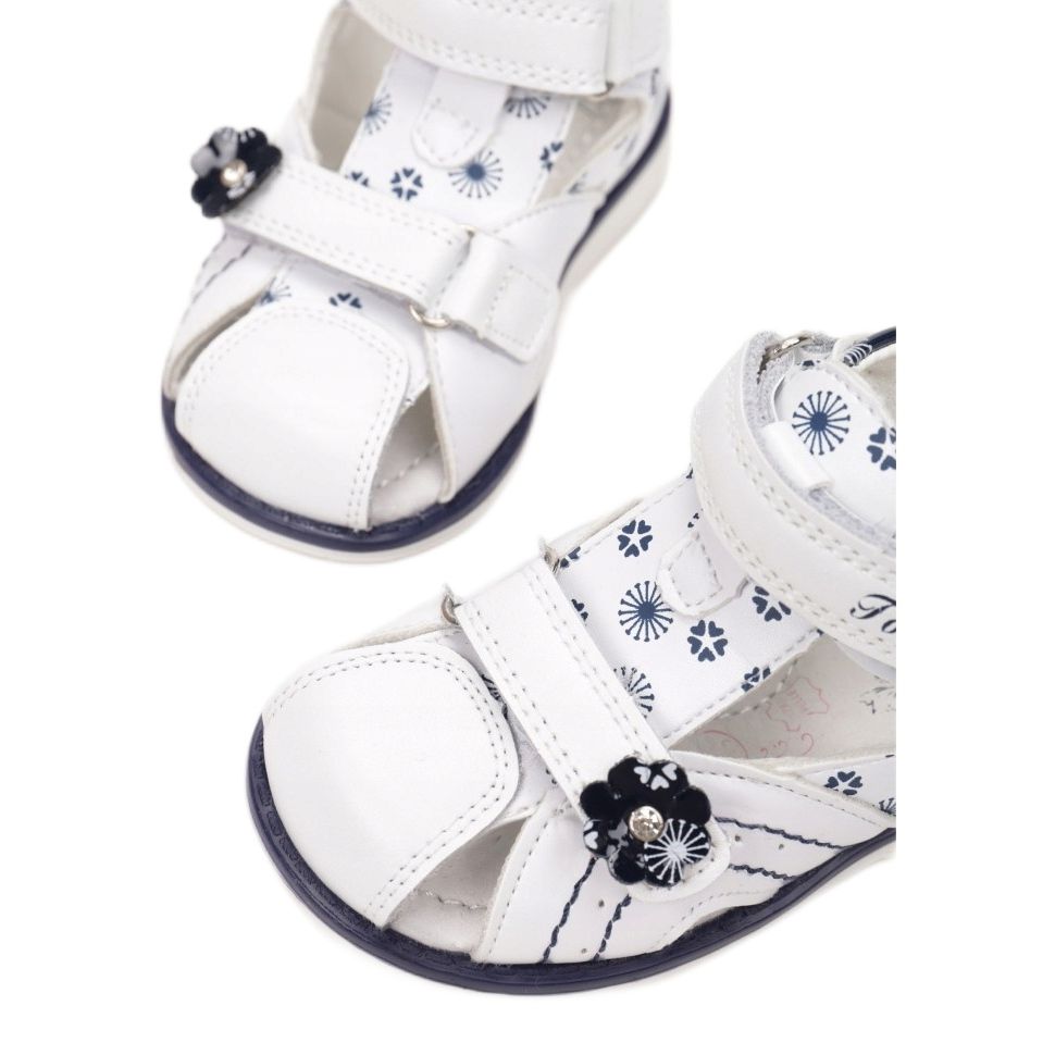 La fermeture fermeture scratch pratique permet un enfilage et un retrait rapides et faciles, ce qui est particulièrement important pour les enfants actifs. Grâce aux couleurs blanc et bleu marine, les sandales s'adapteront parfaitement à différents styles estivaux.