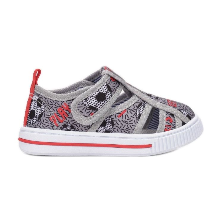 Il y a une petite poignée à l'arrière des chaussures pour faciliter leur enfilage, et le matériau textile dans lequel elles sont fabriquées est décoré d'un joli imprimé de football qui attirera certainement l'attention des jeunes amateurs de sport. La semelle intérieure en cuir naturel garantit le confort d'utilisation et prend soin de la santé des pieds.