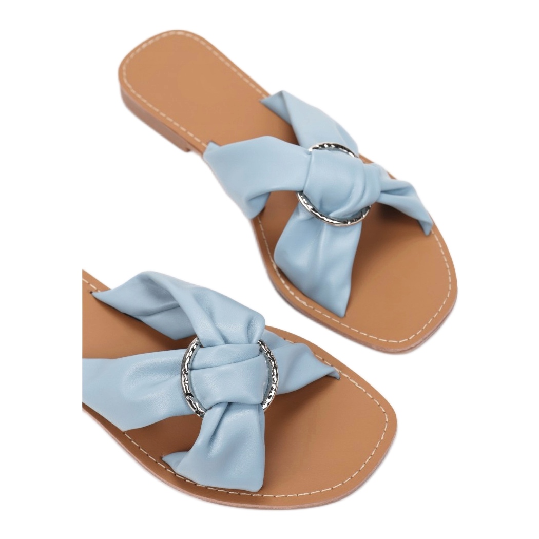 Le design des tongs est basé sur de larges sangles reliées à l'avant, qui assurent non seulement la stabilité, mais ajoutent également une touche tendance grâce à l'application ronde. Fabriquées en cuir écologique de haute qualité, les tongs sont non seulement élégantes, mais également respectueuses de l'environnement.