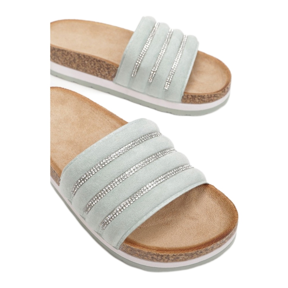 Les tongs vertes Vices CM-2085-61 sont un choix parfait pour les femmes à la recherche de chaussures de tous les jours à la mode et confortables. Fabriqués en cuir suédé écologique de haute qualité, ils offrent non seulement un confort de port, mais aussi un look élégant. De plus, décorés de zircons et de strass, ils ajoutent un caractère unique à n'importe quel style.