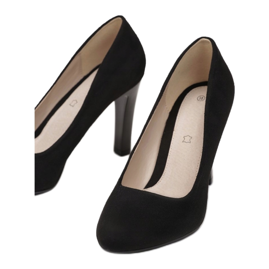 Ce modèle est à enfiler, ce qui facilite l'enfilage et le retrait, et l'insert en cuir naturel assure un confort et une ventilation adéquate. Le matériau synthétique de la semelle garantit durabilité et résistance à l'abrasion, ce qui signifie que les escarpins dureront longtemps.