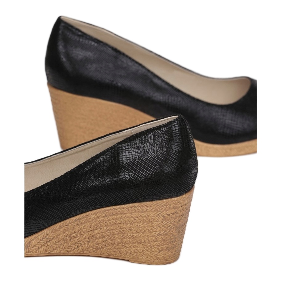 Grâce à la hauteur de cale de 7 cm, ces escarpins allongent non seulement optiquement les jambes, mais permettent également un mouvement confortable. Le motif dominant est minimaliste, ce qui permet aux escarpins de s'adapter parfaitement aussi bien aux styles de tous les jours qu'aux tenues plus élégantes.
