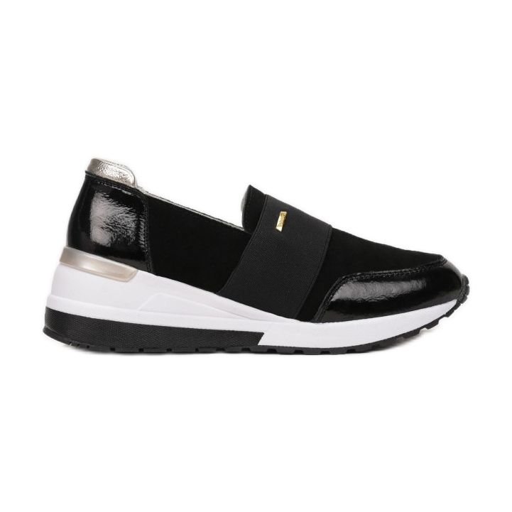 Nous vous présentons les baskets Vices FT87-184 dans une version noire et dorée, qui allient parfaitement le style tendance avec le confort d'un usage quotidien. Ces chaussures uniques à talon bas se distinguent par une semelle plus épaisse avec bande de roulement, qui assure non seulement la stabilité, mais aussi un look tendance. Grâce à leur coupe slip-on avec une tige à la cheville et un bout rond, ces baskets sont non seulement confortables, mais aussi faciles à enfiler et à enlever.