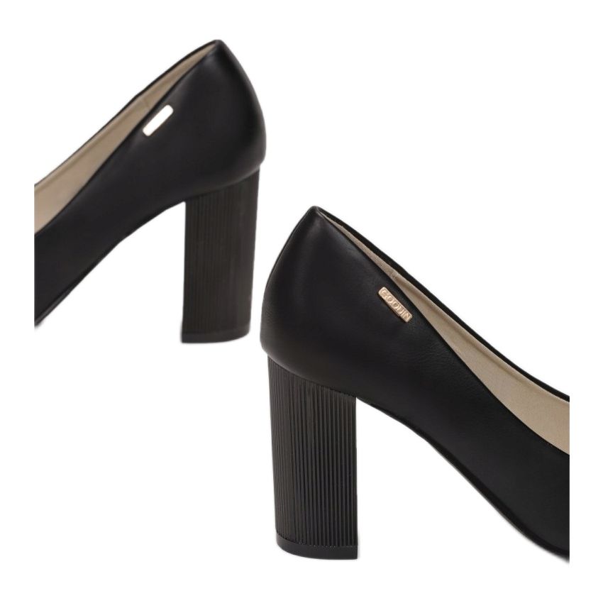 Fabriqués en éco-cuir de haute qualité, les escarpins sont non seulement esthétiques, mais aussi pratiques. L'insert en cuir naturel assure un confort de port même pendant une longue période. Le cœur de ce modèle est un montant de 9 centimètres, qui ajoute une élégance subtile, et le nez pointu permet un allongement optique des jambes.