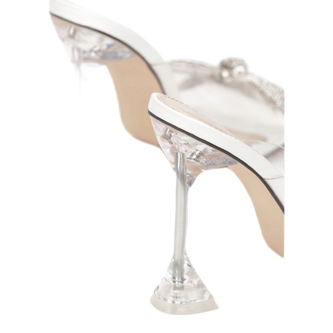Les tongs Vices HP304-71 en blanc sont le choix parfait pour toute femme élégante qui souhaite allier style et confort. Ces tongs uniques avec un talon transparent d'environ 12 cm de haut ajoutent un caractère unique à tout style estival. La bride transparente met non seulement joliment en valeur le pied, mais assure également stabilité et confort au porté.