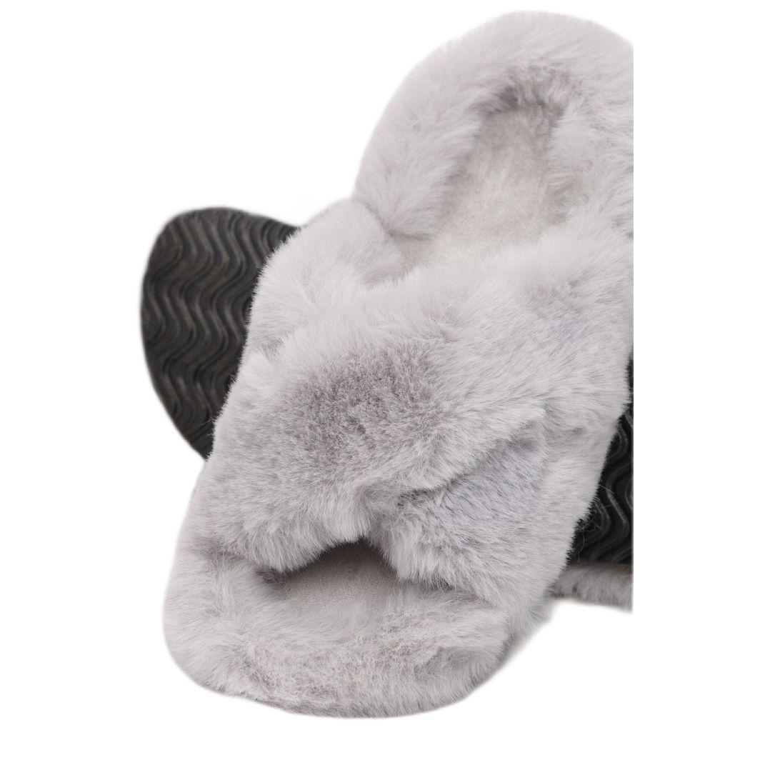 Le modèle est slip-on, ce qui permet de les enfiler et de les enlever très simplement et rapidement. Les sangles stabilisatrices croisées au niveau des orteils séduisent non seulement par leur aspect, mais garantissent également une bonne stabilité du pied. Fabriquées en matière imitant la fourrure, ces tongs enveloppent agréablement vos pieds, leur apportant chaleur et confort, parfaits pour les moments de détente en soirée à la maison.