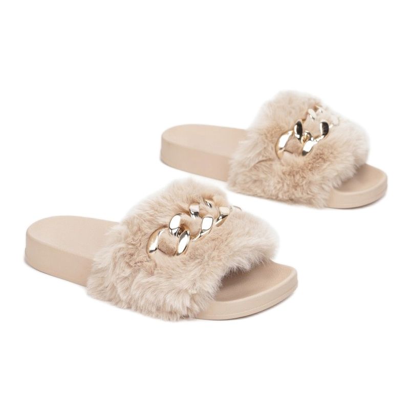 Nous présentons les claquettes à enfiler Vices NA18-42 dans une élégante couleur beige, qui allient parfaitement confort et design à la mode. Ces tongs stylées se distinguent par une large bride en imitation fourrure, qui leur confère un charme extraordinaire et les rend extrêmement agréables à porter. L'application en forme de chaîne placée en haut de la ceinture leur donne un peu d'extravagance, ce qui en fait un choix idéal aussi bien pour un usage quotidien que pour diverses occasions.