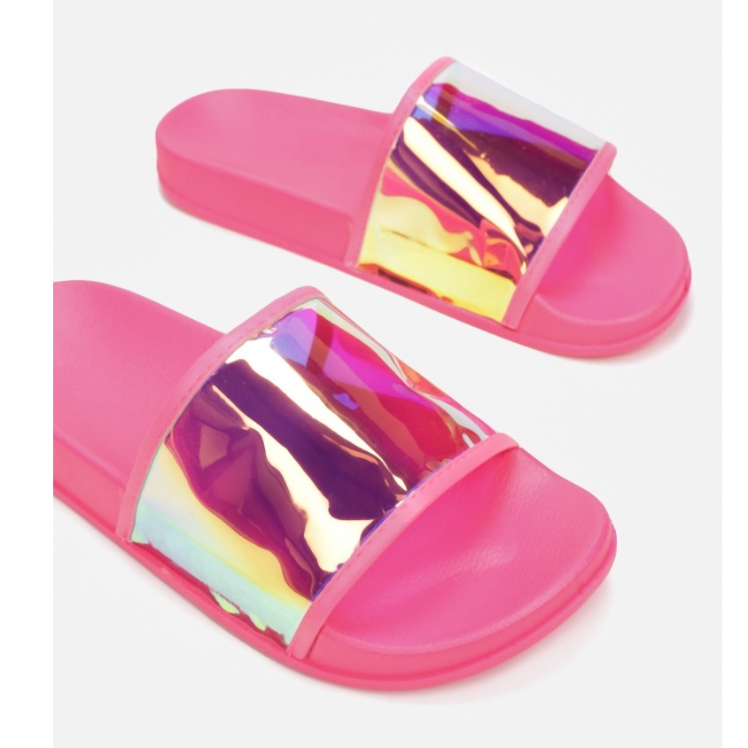 L'effet holographique leur ajoute un caractère unique, faisant de chaque instant passé dans ces tongs une expérience élégante. Le bout rond exposé complète leur look sportif, et la semelle épaisse avec profil sur le dessus garantit le confort lors d'un port prolongé.