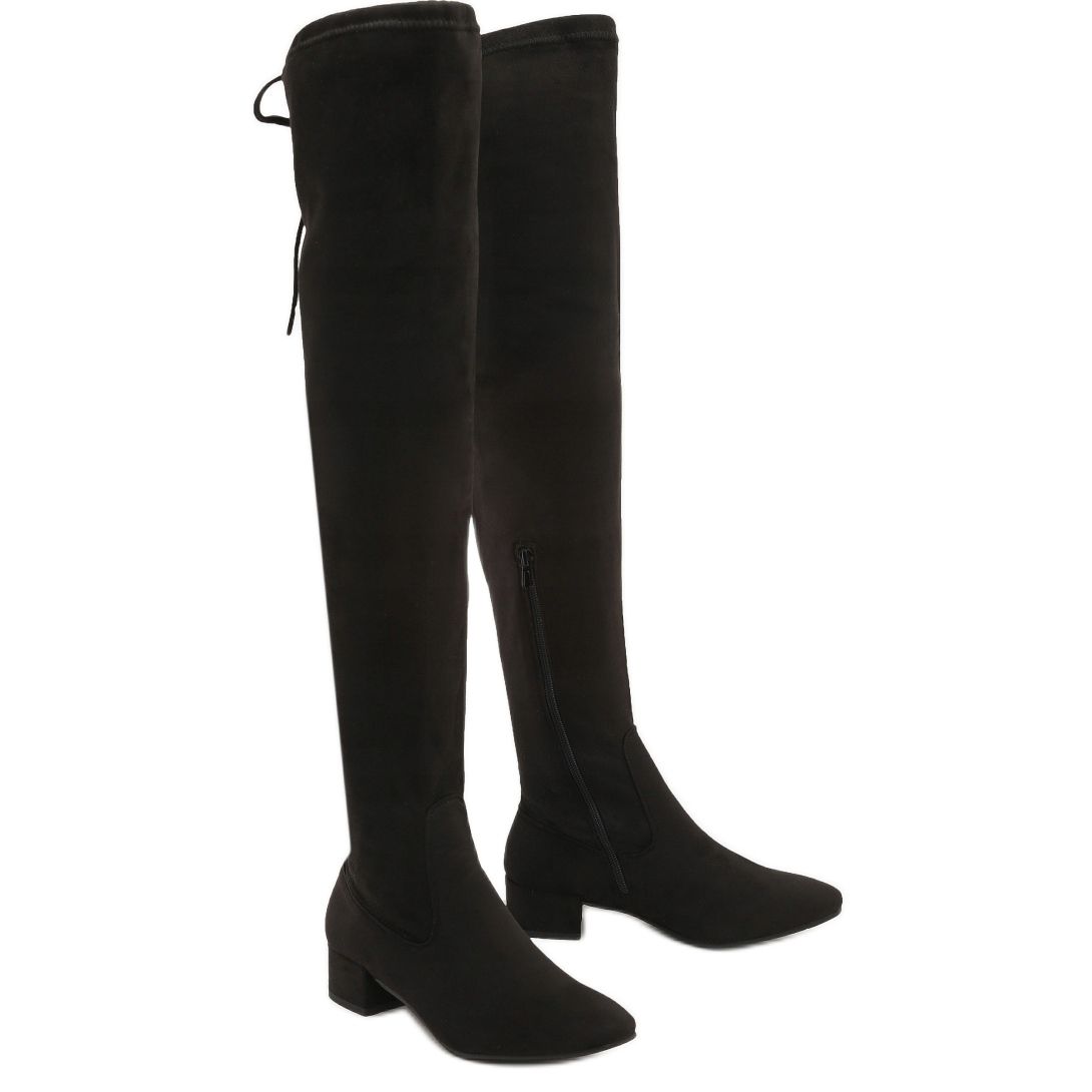 Les bottes Vices T113-1 Black sont le choix parfait pour les femmes qui apprécient l'élégance et le confort. Ces mousquetaires au-dessus du genou uniques, fabriqués en éco-daim de couleur noir profond, correspondent parfaitement aux dernières tendances de la mode. Grâce au talon bas de 5 cm de haut, ces chaussures assurent un confort de port toute la journée, même pour les femmes qui préfèrent éviter les talons hauts.