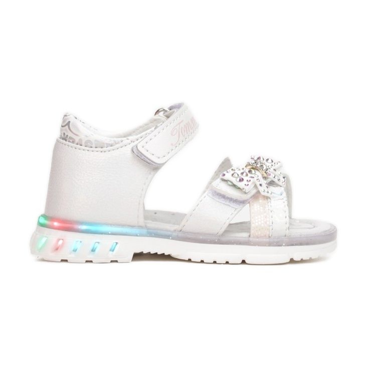 Les sandales Vices T9225-LED-71-white sont le choix parfait pour toutes les petites fashionistas qui veulent se démarquer dans la foule ! Ces sandales blanches à bout ouvert et talon monté allient élégance et fonctionnalité. Montées sur une semelle plate avec bande de roulement, les sandales sont dotées de lumières LED colorées intégrées qui attireront certainement l'attention et ajouteront de la brillance à n'importe quelle chaussette.