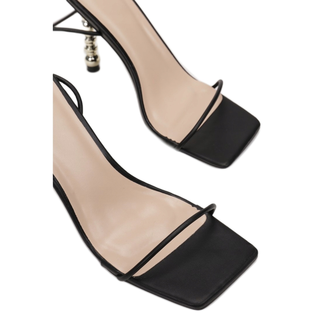 Le design de ces chaussures se distingue par l'absence de bout, ce qui leur confère légèreté et un caractère moderne. Le talon haut de 8 cm de haut met en valeur la silhouette et ajoute de l'attractivité à chaque pas. Les sandales sont fabriquées en cuir écologique de haute qualité, ce qui les rend non seulement esthétiques, mais également respectueuses de l'environnement.