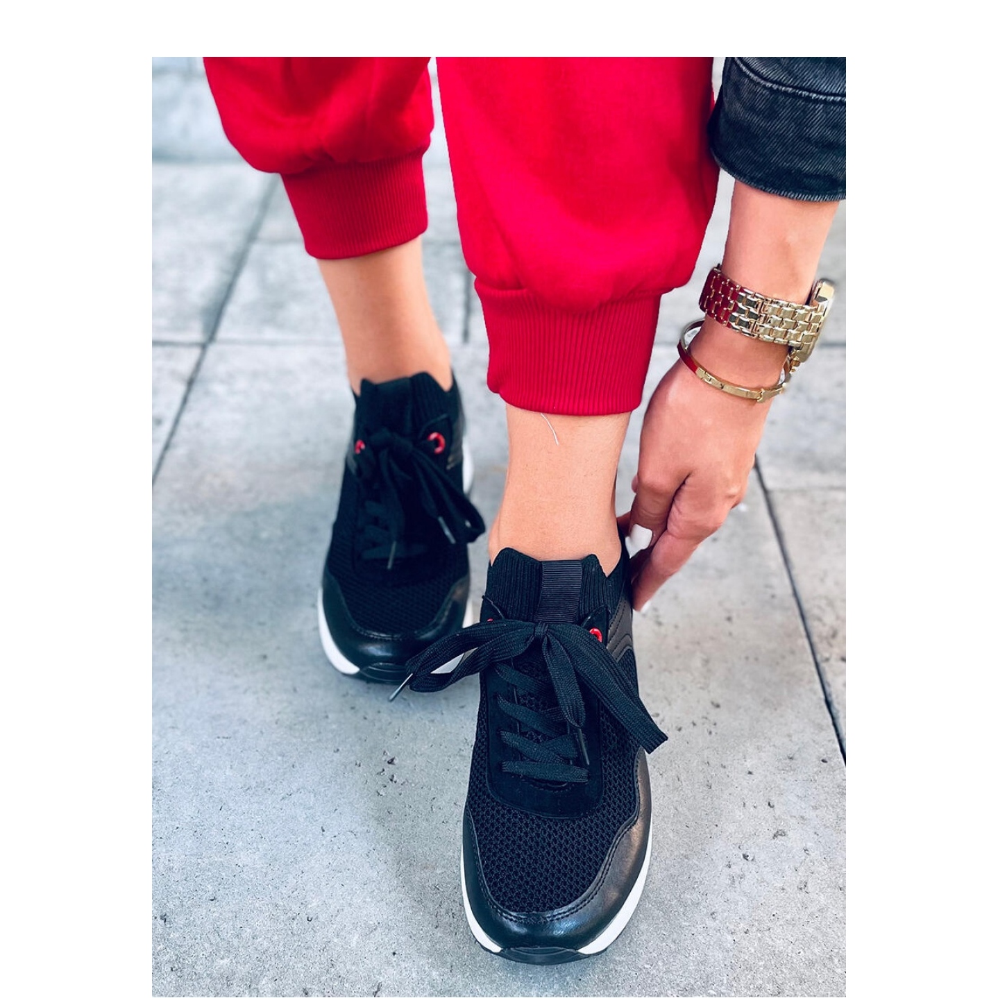 Chaussures de sport à lacets - baskets femme à talon compensé de 6 cm de hauteur. Le modèle avec la finition chaussette la plus tendance assure un ajustement parfait... C'est une proposition parfaite pour les femmes qui apprécient le confort :) Vous vous sentirez bien dans ces chaussures ! Matériau extérieur ? cuir écologique + daim écologique + tissu.