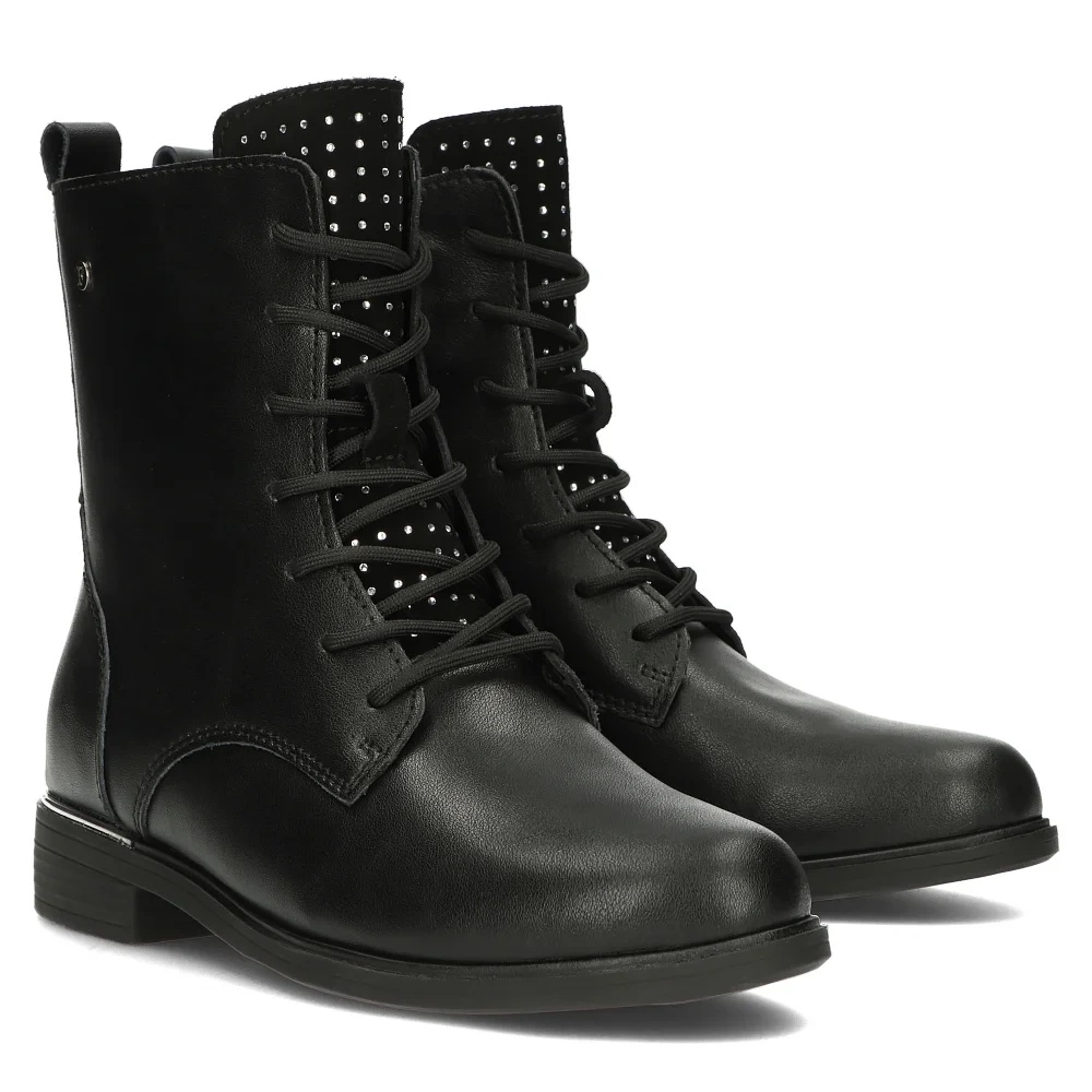 Bottines en cuir chic, réalisées avec précision en noir. Les chaussures s'adaptent parfaitement à tout type de style, qu'il soit formel ou quotidien. Un talon plat et un bout rond subtil permettent des solutions à la mode et élégantes dans les moindres détails. Les chaussures d'hiver pour femmes sont le meilleur choix possible. Les bottes sont doublées d'une agréable fourrure courte noire, assurant la chaleur même en cas de froid intense.
