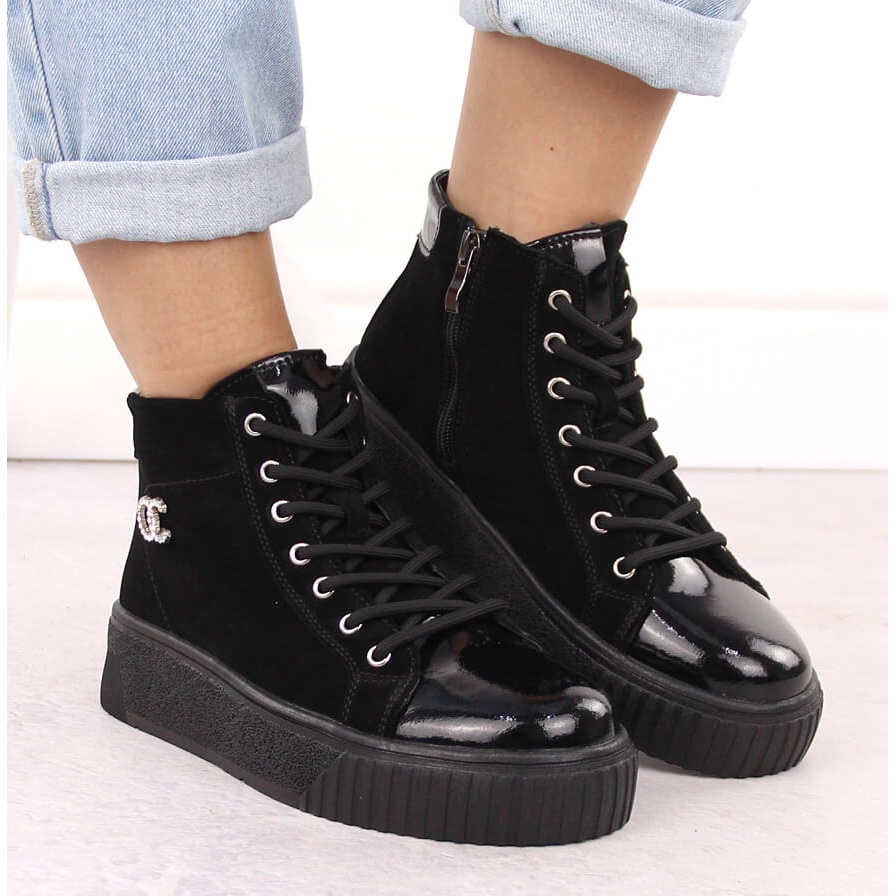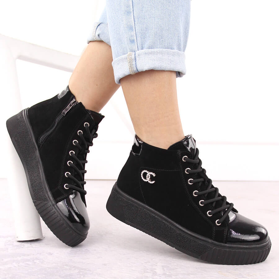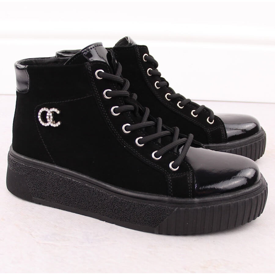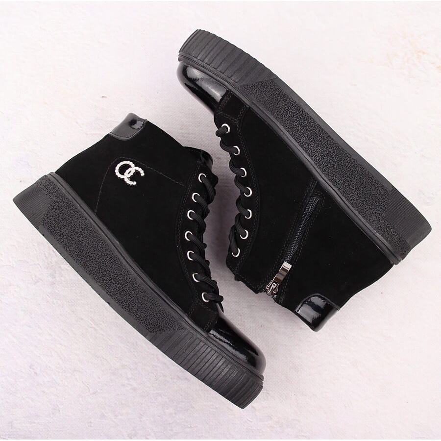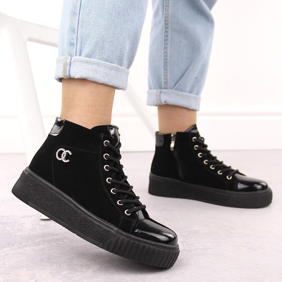 Ce modèle est caractérisé par une doublure isolée et un insert confortable en fourrure agréable, ce qui les rend parfaits pour des jours plus frais. Le haut atteint près de 10 cm et une semelle plate d'une épaisseur de 3,5 cm assure le confort pendant de longues heures. Un avantage supplémentaire est des strass subtiles, qui donnent aux chaussures une lueur spéciale.