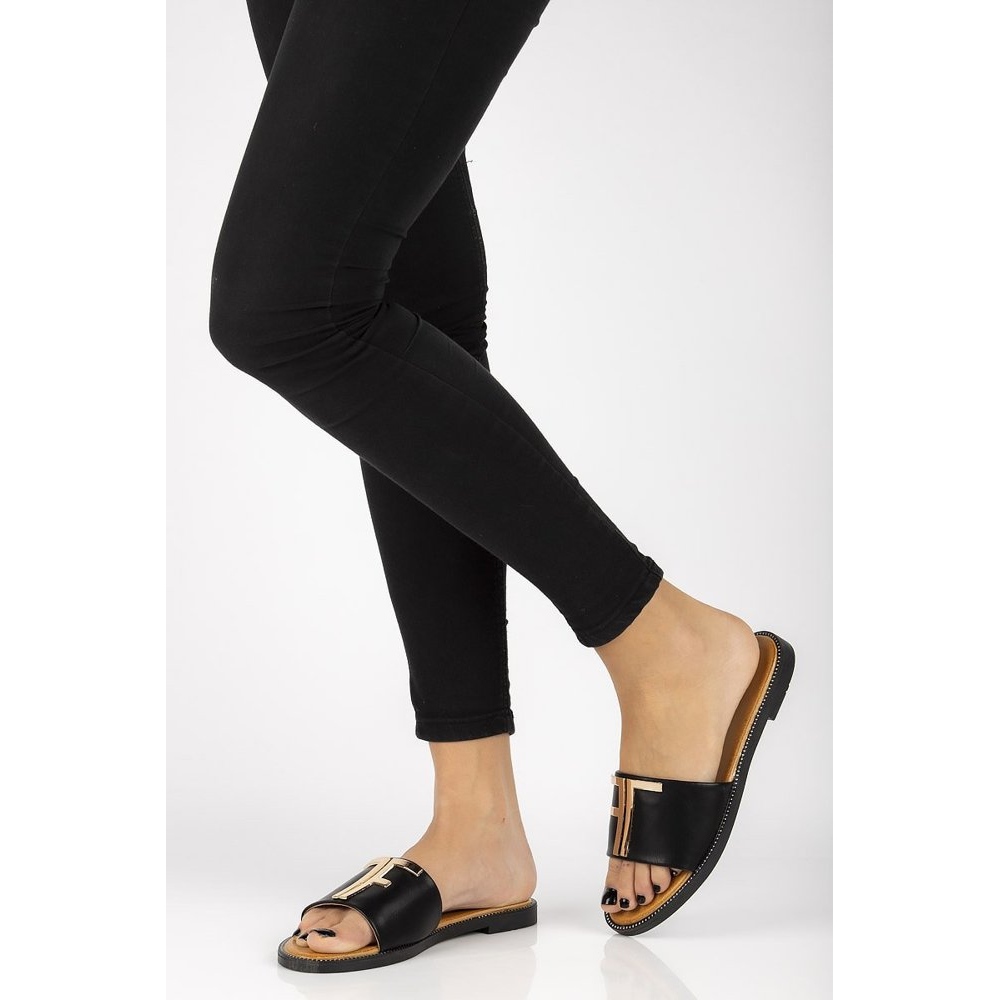 Fabriquées en cuir écologique de haute qualité, les tongs se caractérisent par un design minimaliste, enrichi de subtils strass qui leur confèrent un style unique. Elles possèdent une semelle synthétique d'une hauteur de 1 cm, qui assure un confort au porté.