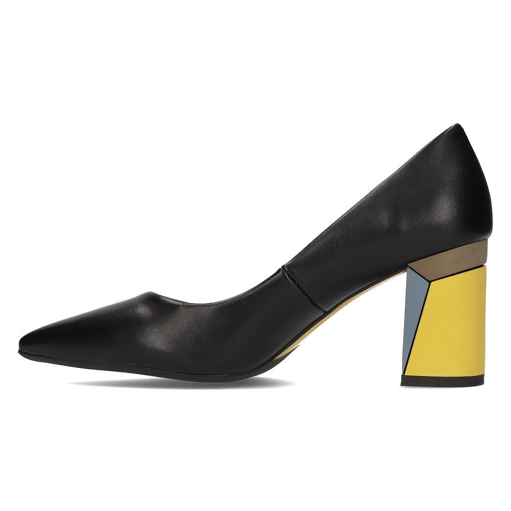 La tige de 6,5 cm de haut est fabriquée en cuir écologique de haute qualité, ce qui rend les chaussures à la fois durables et respectueuses de l'environnement. De plus, la semelle intérieure en cuir naturel assure un confort de port tout au long de la journée. Une semelle en plastique et un talon bloc de 7,5 cm ajoutent de la stabilité, ce qui fait de ces escarpins un excellent choix pour de longues heures d'utilisation.