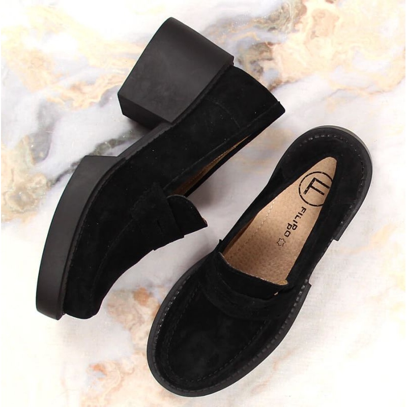 Les mocassins à talons hauts en cuir Filippo W DP4685/23 sont des chaussures pour femme de la marque Filippo. Elles ressemblent à des chaussures élégantes et stylées, parfaites pour un usage quotidien. Fabriqués en cuir suédé de haute qualité, ils offrent confort et durabilité. Leurs couleurs noires universelles leur permettent de s'adapter à de nombreux styles.