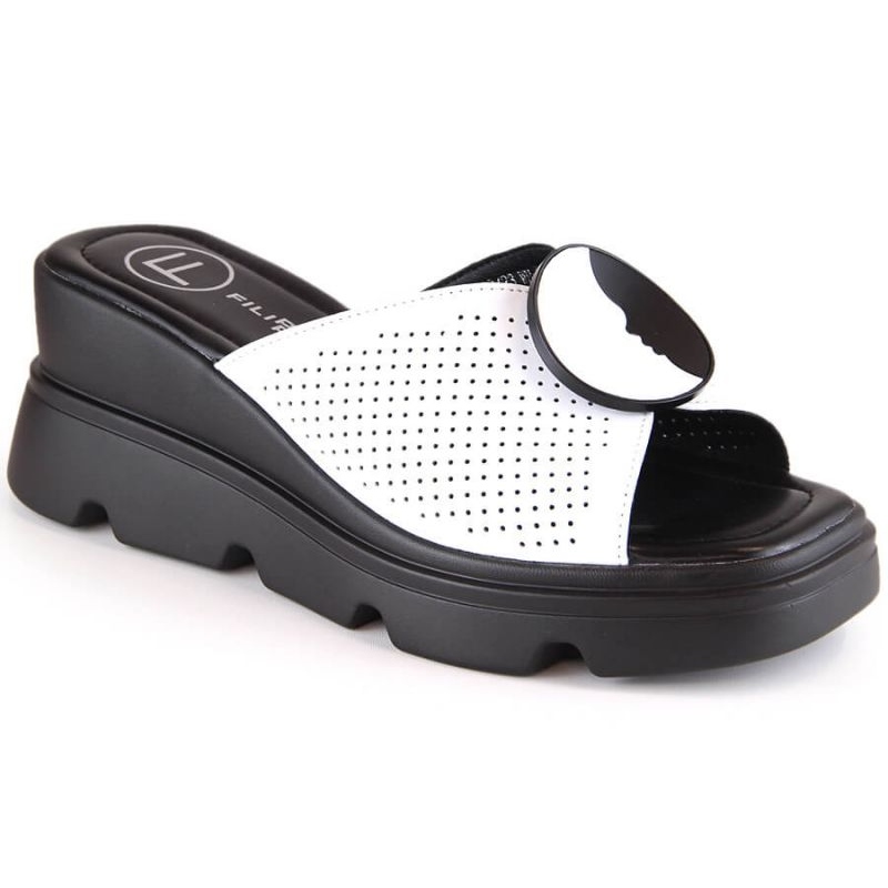 Conçues pour les femmes qui apprécient la fonctionnalité et l'esthétique, les tongs Filippo s'intègrent parfaitement dans la catégorie des chaussures décontractées au quotidien. Ils se distinguent principalement par la doublure en cuir, qui offre un confort aux pieds et leur permet de se sentir bien même après de nombreuses heures d'utilisation. La couleur blanche leur confère un caractère universel qui s'adapte facilement à différents styles - des robes aériennes aux jeans et shorts d'été.