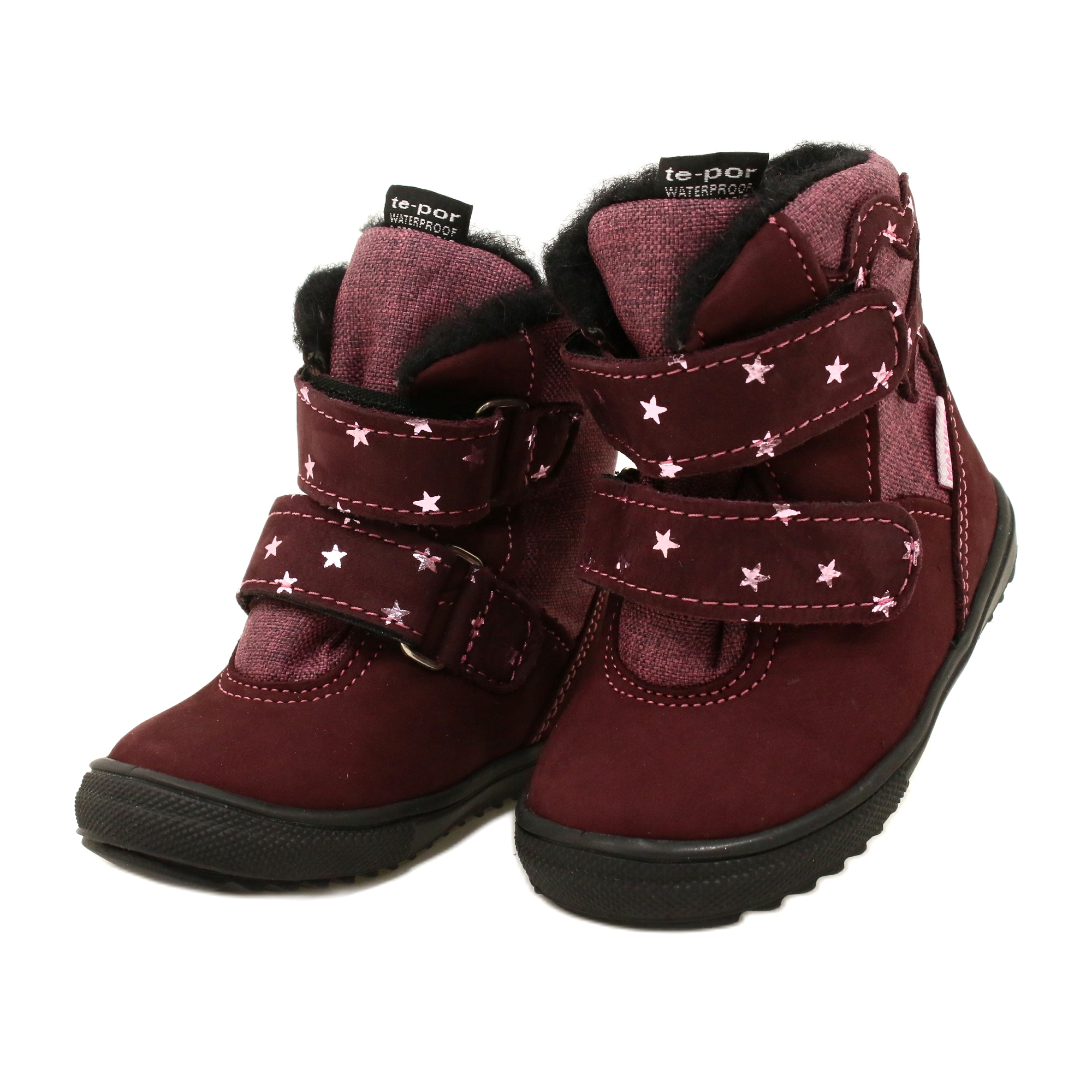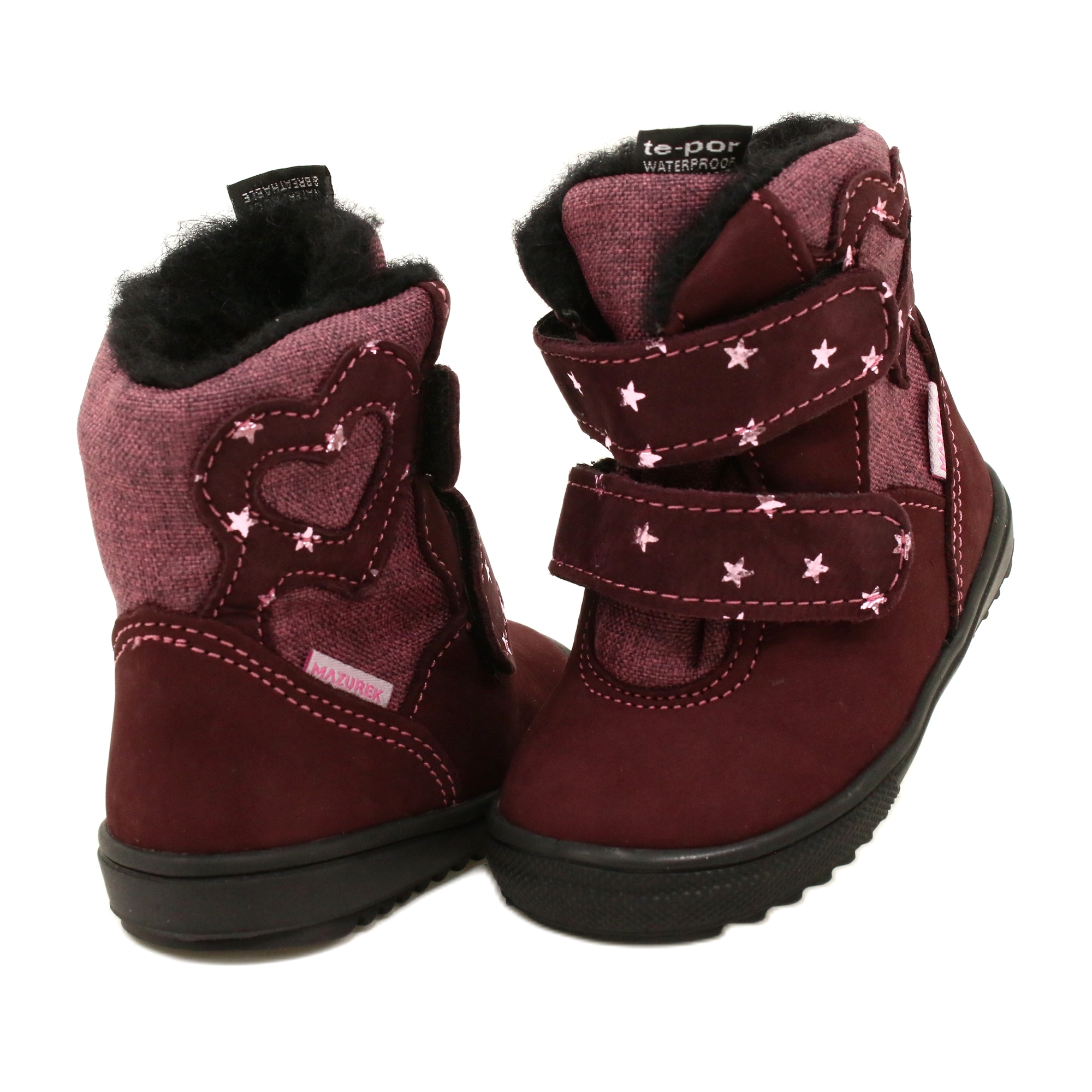 Les bottes de neige imperméables TE-POR Mazurek 1351 de couleur bordeaux sont le choix parfait pour les petites filles qui ont besoin de confort et de protection lors des journées glaciales. Grâce à l'utilisation de la membrane innovante TE-POR, ces chaussures protègent efficacement de l'humidité, ce qui vous permet de jouer librement en extérieur, même dans des conditions difficiles.