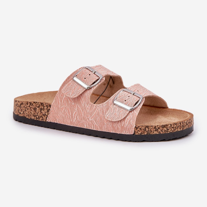 Détails: Flip de matériau -flops sur une semelle en liège avec des boucles roses