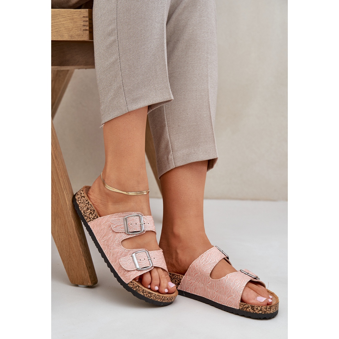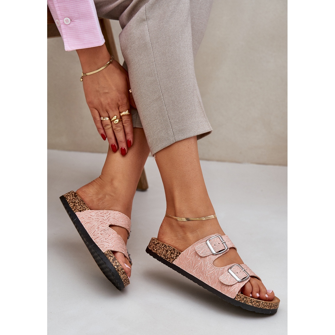 Deux rayures avec boucles permettent un ajustement facile et rapide, ce qui en fait un excellent choix pour les longues promenades et pour les voyages de vacances. La semelle en liège ajoute la légèreté et plaît en même temps l'œil avec un design à la mode.