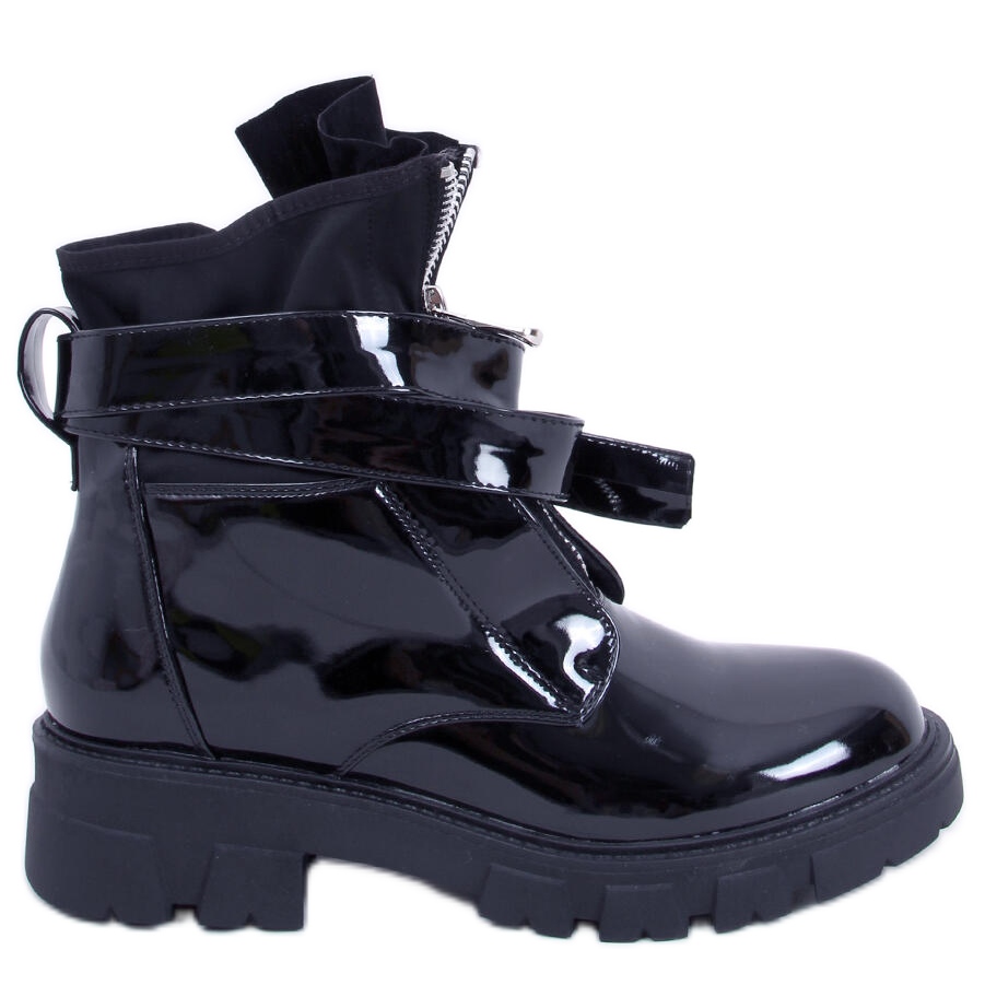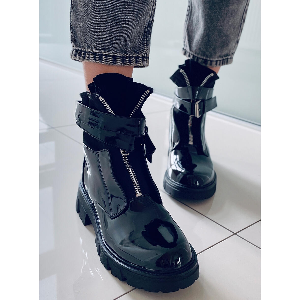 Des rayures accrocheuses et une fermeture éclair sur le devant sont des détails qui attirent l'attention et donnent de l'originalité aux chaussures. La finition laquée noire s'accorde parfaitement avec une variété de styles, du décontracté au militaire, vous donnant toujours un look tendance et élégant.