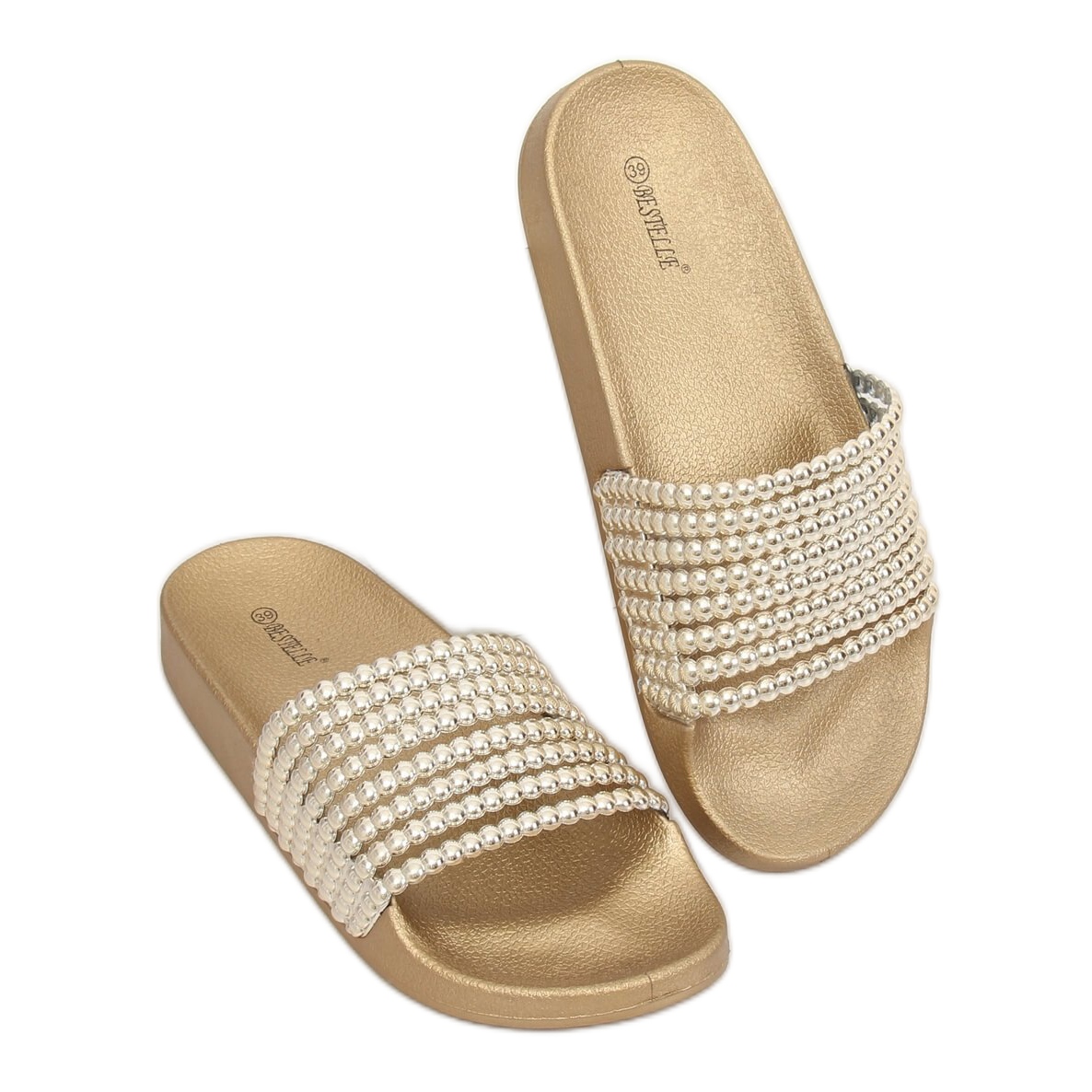 Les sandales G301 Gold avec perles sont le choix parfait pour les femmes qui souhaitent allier style et confort. Ces accessoires de mode à semelle souple se distinguent par une application originale de perles qui leur confère un caractère unique. Grâce à l'insert intérieur profilé, ces tongs garantissent un confort de port, ce qui en fait un excellent compagnon pour les promenades de vacances et les sorties quotidiennes.