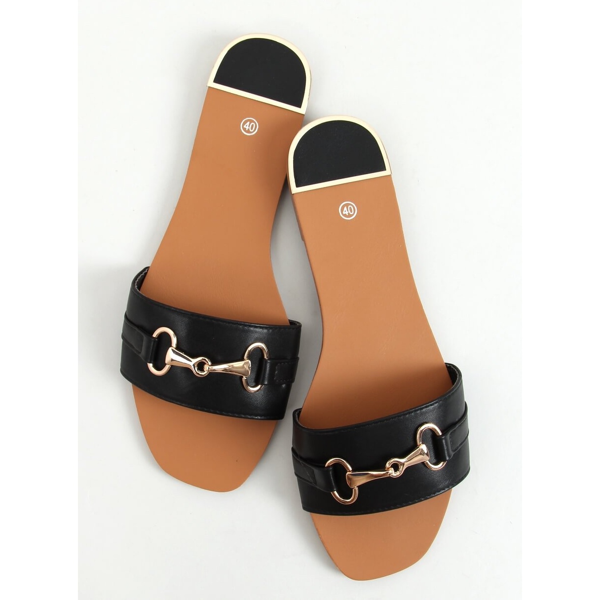 Les tongs noires se distinguent par une décoration dorée de bon goût et une plaque sur le talon, qui ajoutent de l'originalité et les rendent extrêmement attrayantes. Fabriqués en cuir écologique de haute qualité, ils garantissent confort et durabilité, ce qui en fait un élément irremplaçable dans votre garde-robe.
