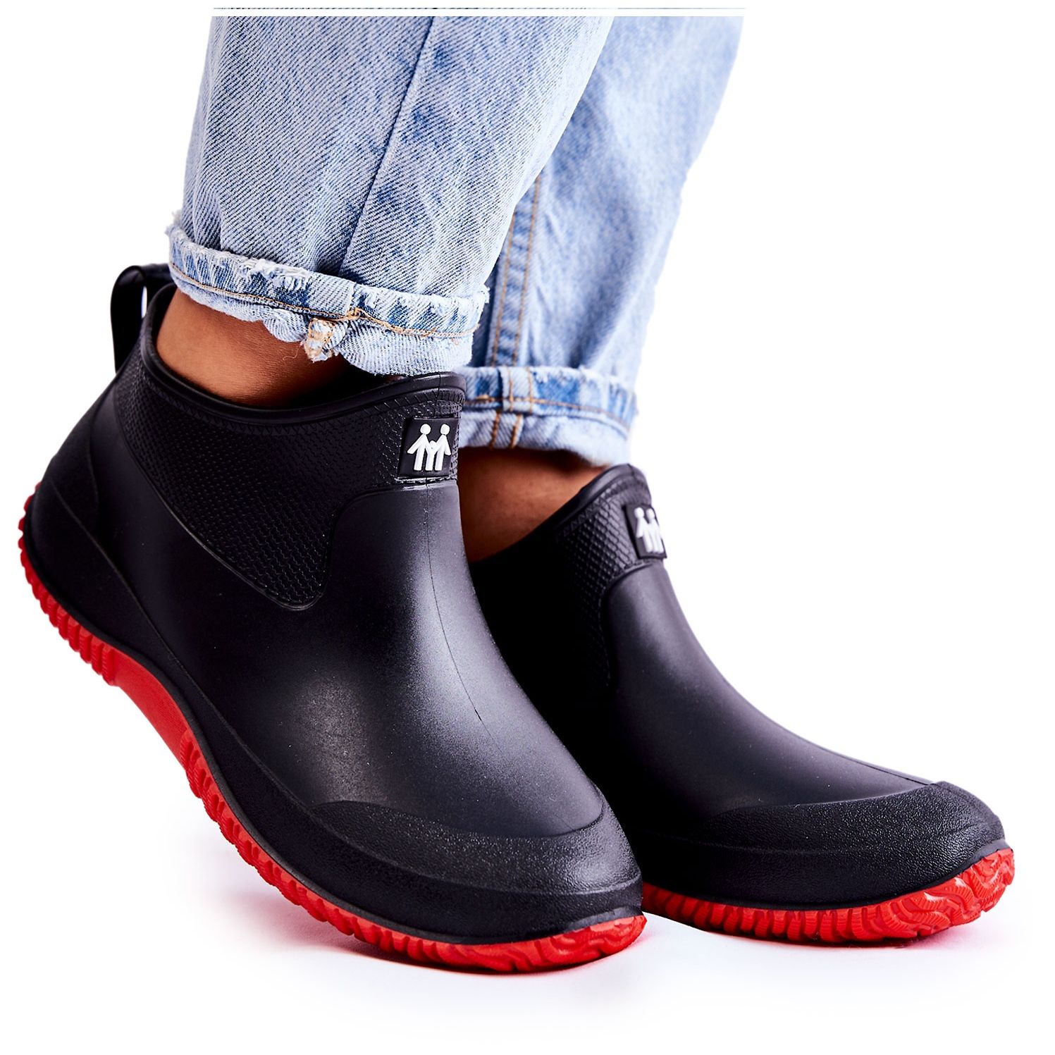 Bottines basses en caoutchouc pour femme Eldora noires et rouges – Votre bouclier contre la pluie et les intempéries