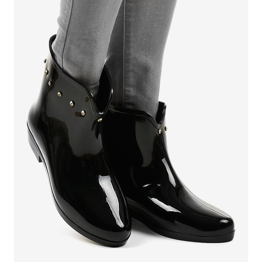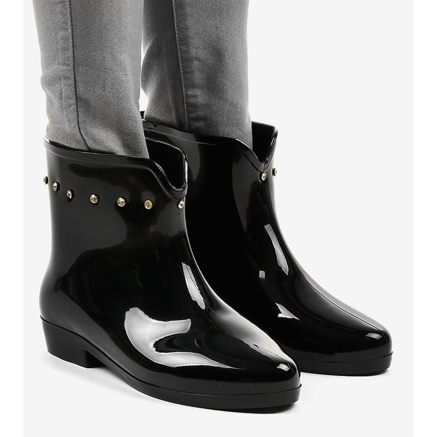 Les bottes Wellington courtes noires avec strass SD97E-1 sont le choix parfait pour les femmes qui souhaitent allier fonctionnalité et look à la mode. Fabriquées en matériau verni d'une élégante couleur noire, ces chaussures à enfiler se distinguent par des décorations uniques en forme de zircons, qui leur confèrent un caractère unique.