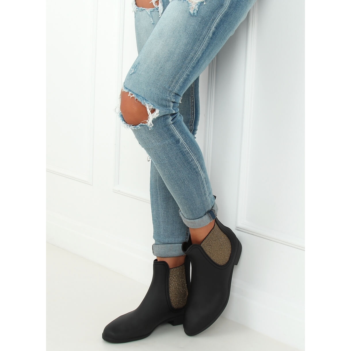 Les bottes en caoutchouc ont une forme visionnaire avec un bout en amande et un talon plat de 3 cm de haut, ce qui les rend confortables à porter toute la journée. Ils sont dotés d'un insert en tissu qui augmente encore le confort d'utilisation.