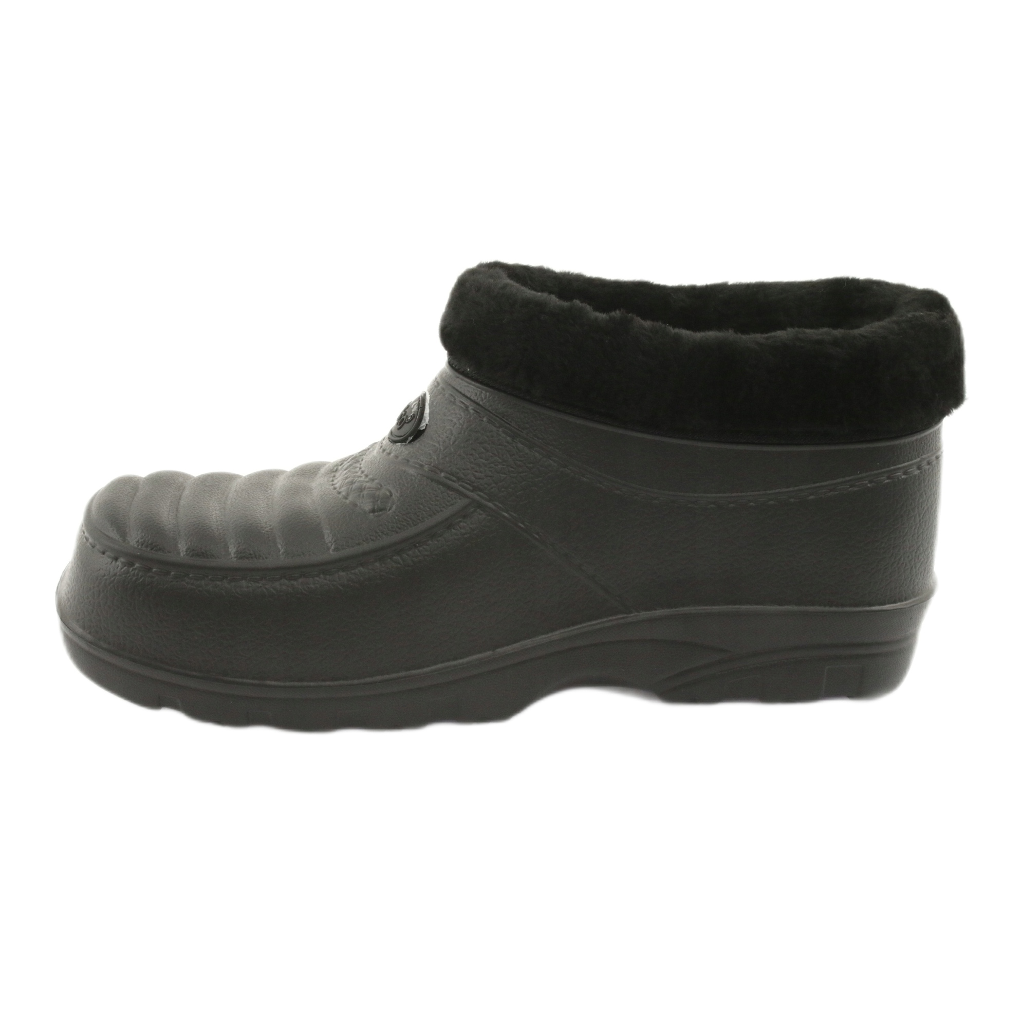 L'intérieur des chaussures est isolé d'une agréable fourrure qui enveloppe le pied, offrant un confort d'utilisation exceptionnel. Grâce à la mousse spéciale qui s'adapte parfaitement à la forme du pied, vous pouvez être sûr que vous vous y sentirez comme chez vous. Les bottes basses Wellington avec une hauteur de tige de 8,5 cm et une largeur de G se distinguent par une couleur noire simple mais élégante, ce qui en fait un ajout universel à toute garde-robe masculine.