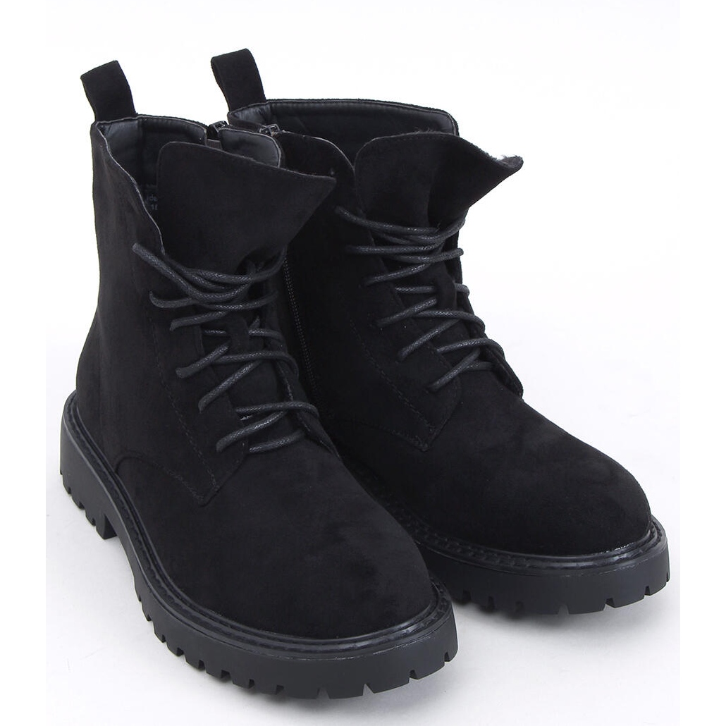 Les bottines en daim noir pour femme sont des chaussures élégantes et pratiques au quotidien. La hauteur de ces bottes dépasse la cheville, ce qui offre une protection et un confort supplémentaires. Les chaussures sont fabriquées en cuir suédé écologique et leur intérieur est doublé de fourrure douce, ce qui assure un confort chaleureux. Ce modèle controversé se ferme sur le côté grâce à une fermeture éclair, ce qui permet de l'enfiler facilement et rapidement. De plus, les bottes sont équipées de lacets traditionnels qui permettent un ajustement parfait au pied. Le produit est équipé d'un talon plat d'une hauteur de 3,5. Un avantage supplémentaire est la semelle synthétique et la semelle intérieure en tissu. Les bottes sont lisses, sans aucun motif supplémentaire. Le fabricant n'est pas nommé, mais fournit l'emballage d'origine du produit. La catégorie de produits est celle des chaussures pour femmes, de style décontracté, dédiées aux femmes.