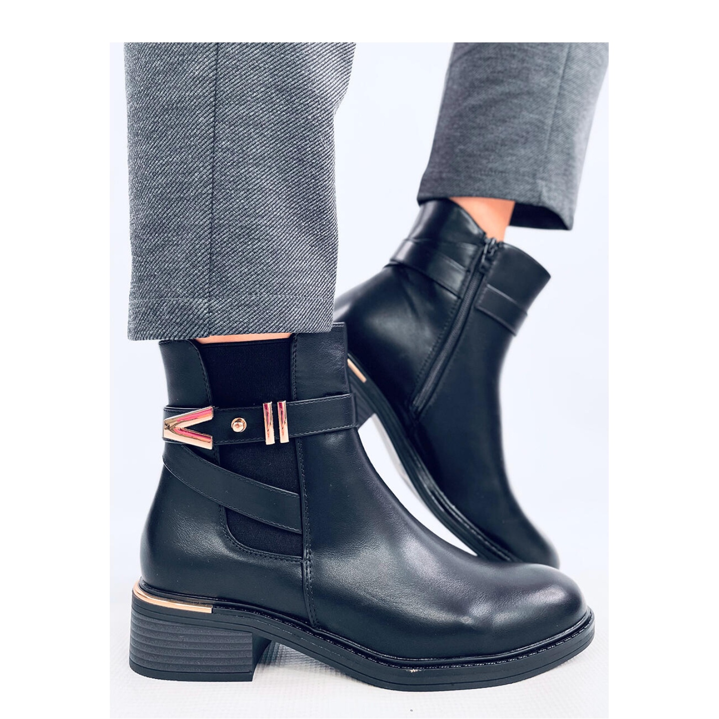 Bottines femme pleine fleur - Bottines Chelsea à semelle plate. Ils seront certainement enchantés par les amateurs de styles classiques avec des accessoires dorés stylés. Les bottes sont dotées d'un insert en caoutchouc sur le côté de la tige et d'une fermeture zippée pour un enfilage facile. Ils sont fabriqués en cuir écologique et l'intérieur est doublé d'une fourrure délicate.