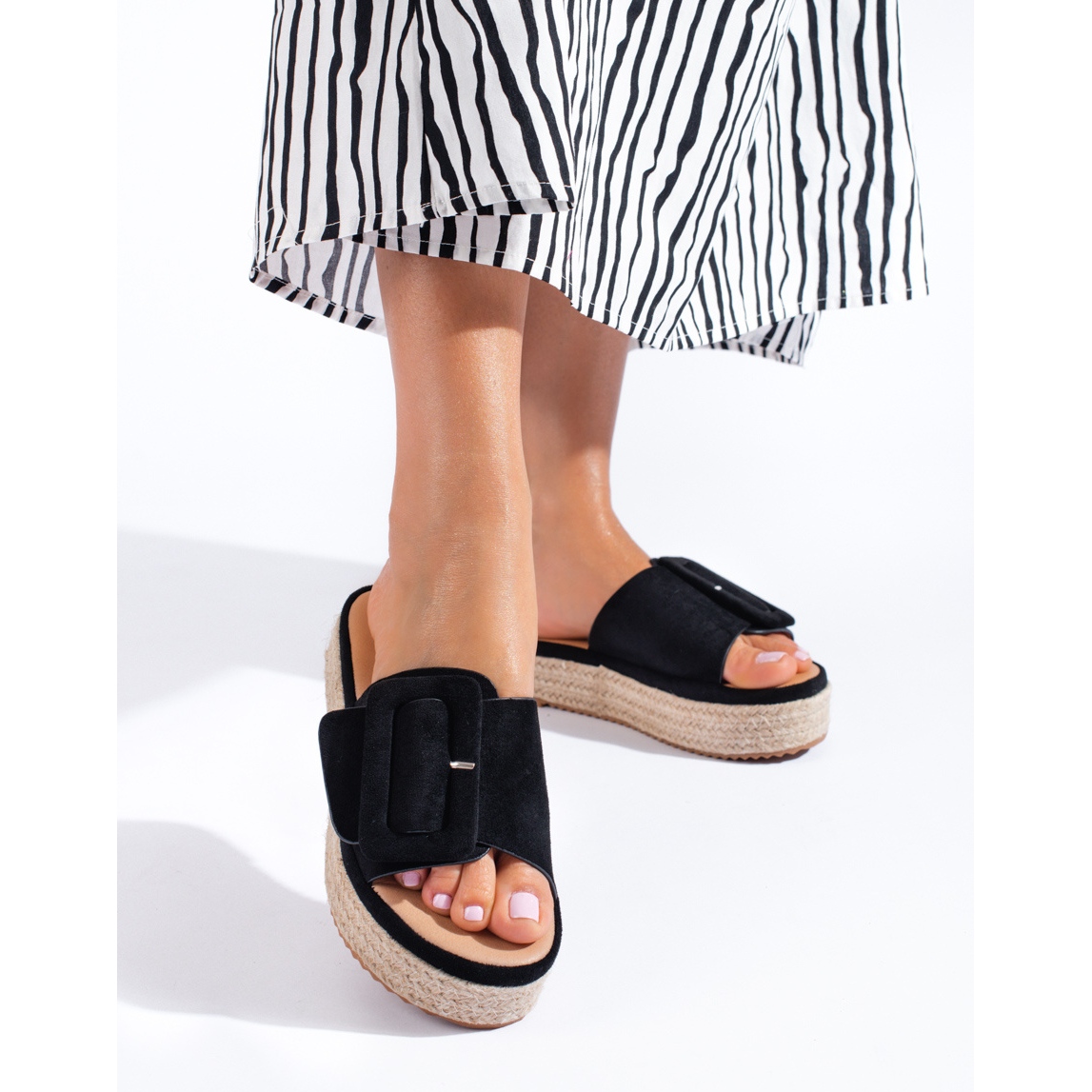 SHELOVET Glissières d'espadrilles en daim noir sur la plateforme Shelovet le noir