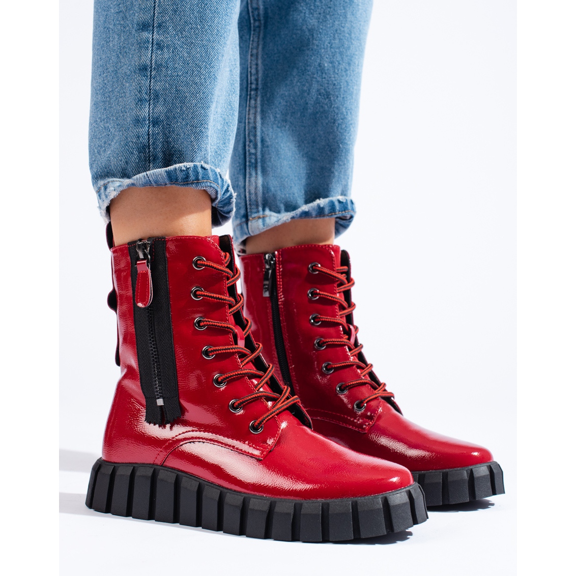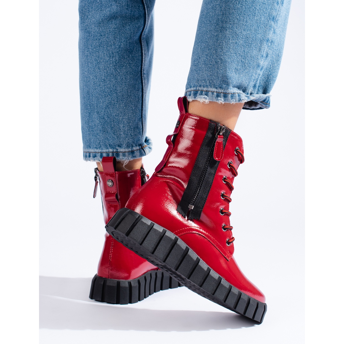 Découvrez des ouvriers à plateforme rouges uniques du fabricant W. Potocki, qui correspondent parfaitement aux tendances actuelles. Ces bottines femme allient style décontracté et rock, parfaites pour la saison automne/hiver. Fabriqués en cuir écologique verni de haute qualité, ils offrent non seulement une apparence attrayante, mais aussi un confort de port.