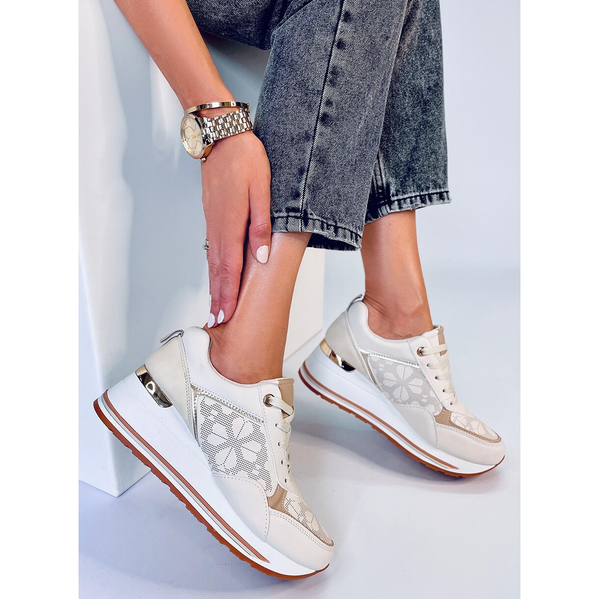 Découvrez un style et un confort uniques avec des baskets compensées. Le modèle présenté est un incontournable absolu dans la garde-robe de toute femme à la mode qui apprécie la combinaison de l'élégance et de la sportivité. Nous vous proposons des chaussures pour femmes de couleur beige qui vous raviront non seulement par leur look, mais aussi par leur confort de port.