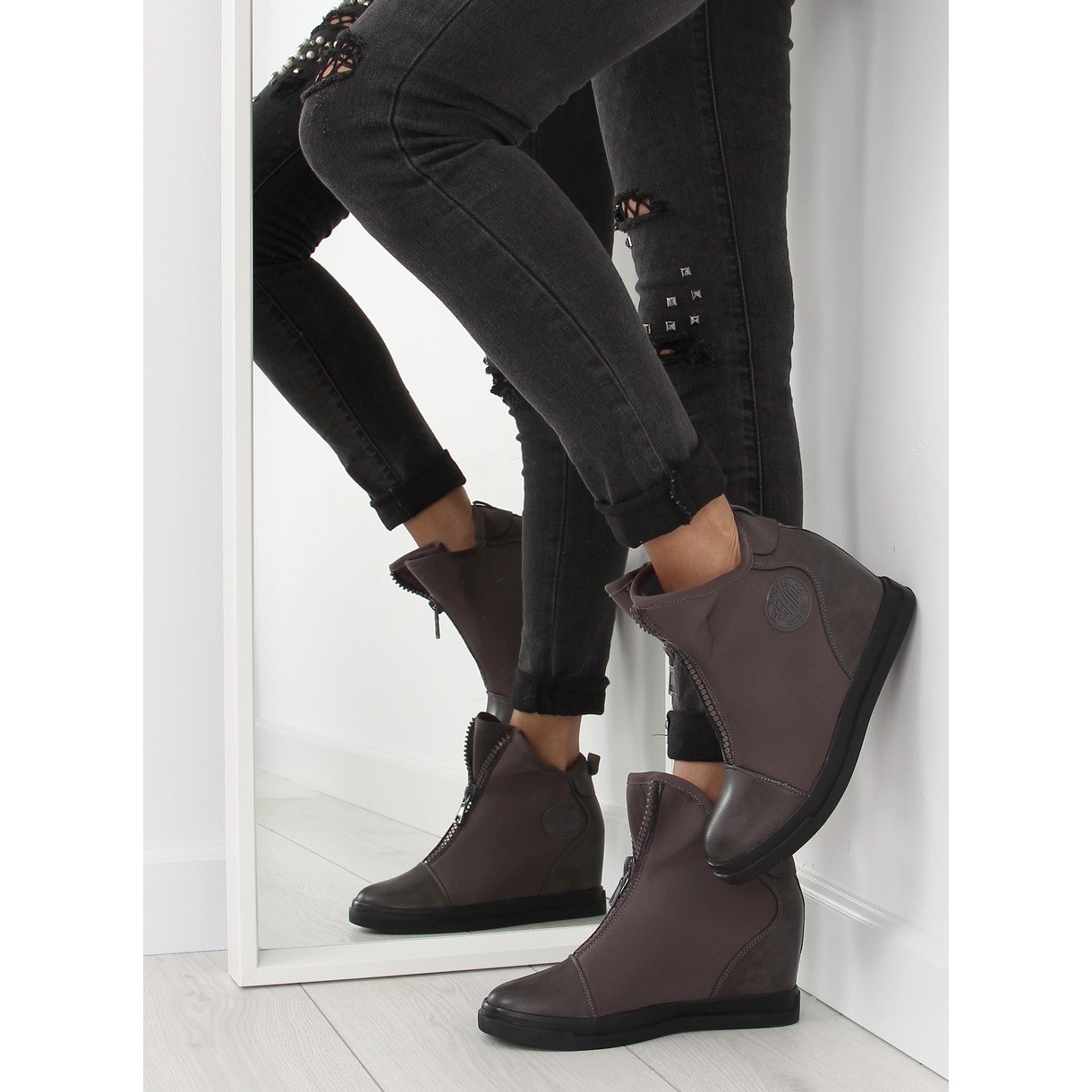 Les baskets compensées grises 168-129 gris sont un choix parfait pour toute femme moderne qui souhaite allier confort de port et look à la mode. Laissez votre style de tous les jours prendre une nouvelle expression originale !