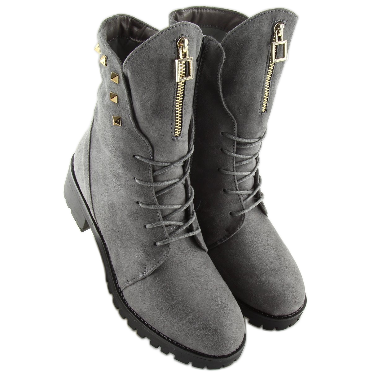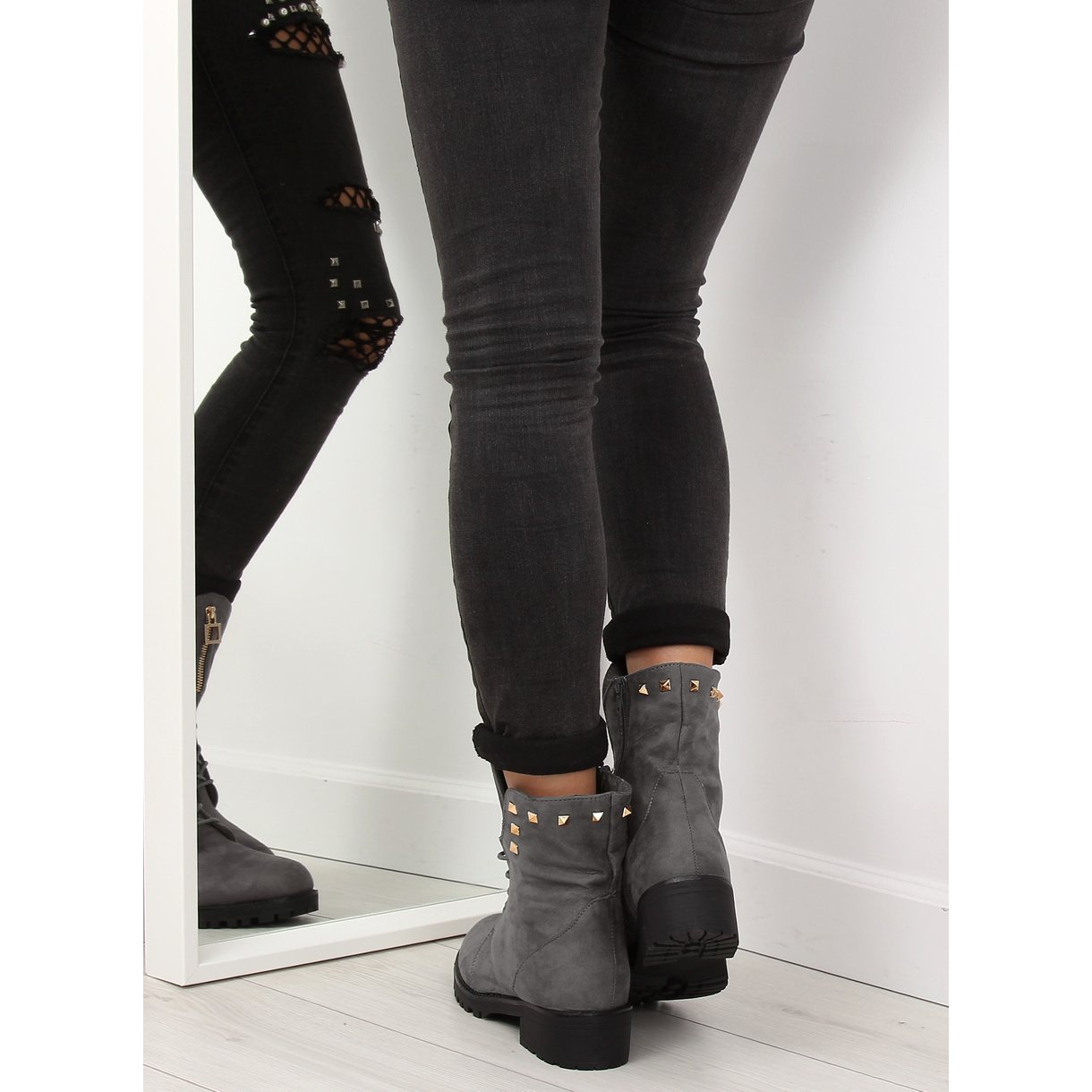 Entièrement lacées, les bottines sont également équipées d'une fermeture éclair latérale, ce qui facilite grandement leur enfilage et leur retrait. Fabriqués en daim écologique, ils se caractérisent non seulement par une finition élégante, mais aussi par le respect de l'environnement.