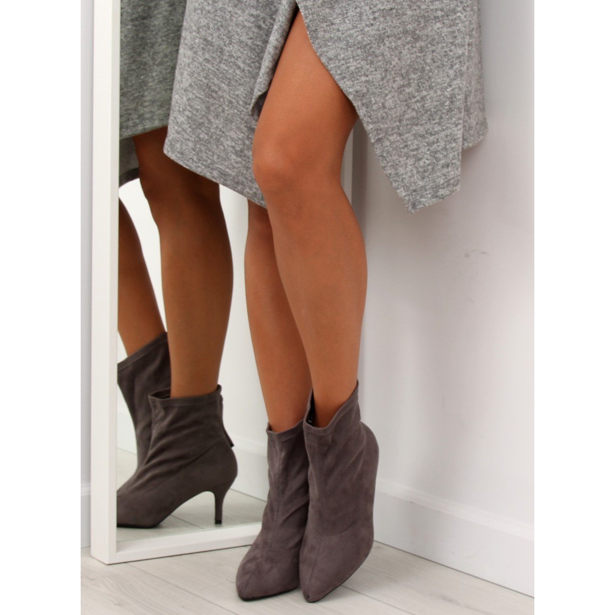 Les bottines à enfiler F183 Grey sont le choix parfait pour toutes les femmes qui souhaitent allier élégance et confort. Fabriqués en tissu doux recouvert de daim écologique, ils ravissent par leur aspect et leur qualité. Un bout pointu délicat et un talon aiguille de 7 cm de haut donnent aux jambes un aspect galbé et élancé, ce qui mettra particulièrement en valeur la silhouette.