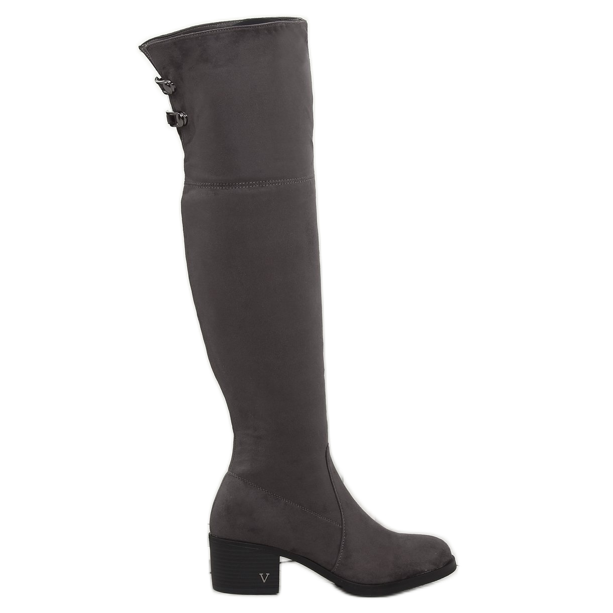 Nous vous présentons des mules à talons hauts dans une élégante nuance de gris - le modèle BH131-HB Grey, parfaites pour toutes les femmes à la mode. Ces bottes pour femmes en éco-cuir suédé de haute qualité combinent une coupe classique et des solutions modernes, ce qui en fait un excellent choix pour les promenades d'automne et d'hiver.