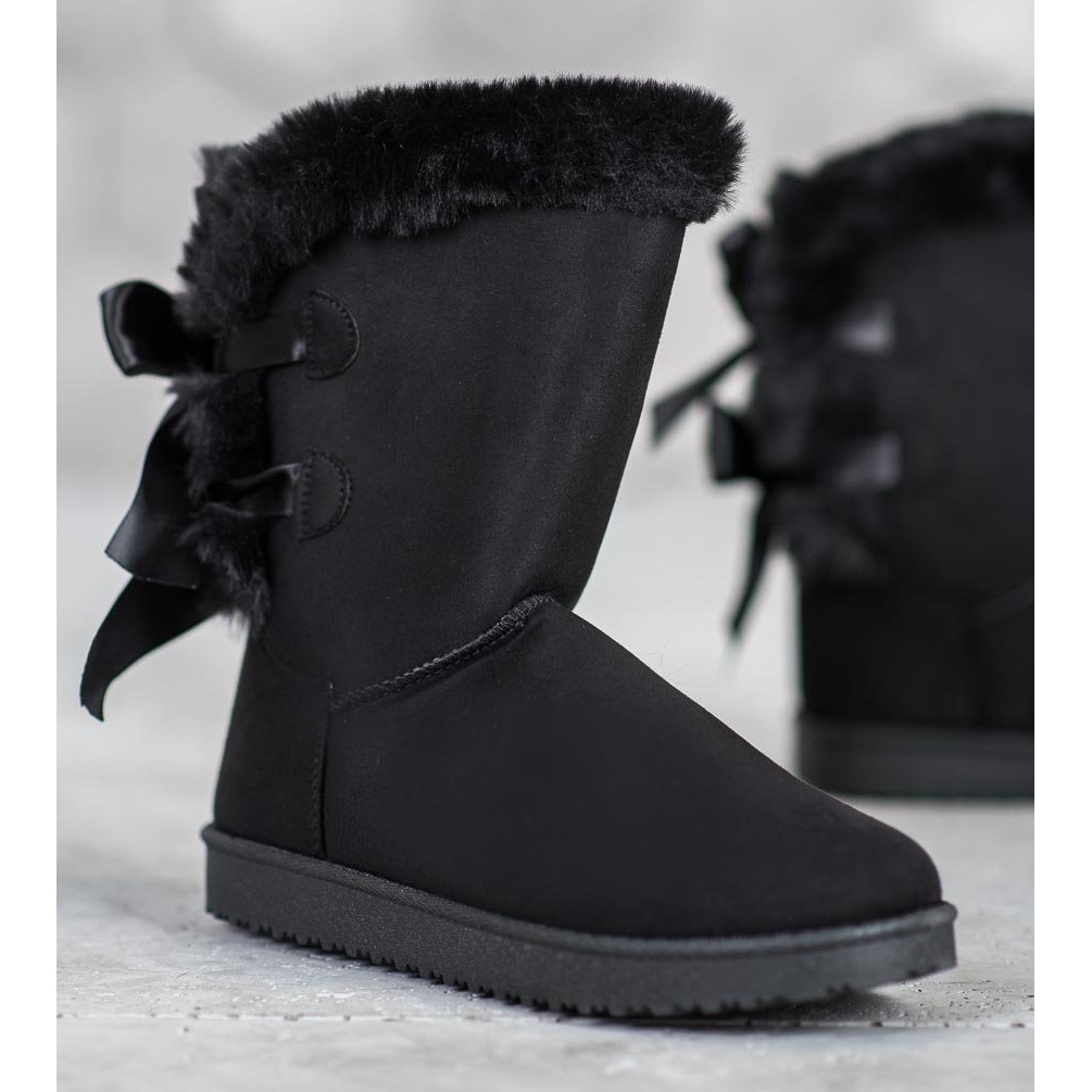 Les mukluks noirs sont des chaussures qui ravissent par leur simplicité et leur élégance. Avec l'ajout d'un nœud, ils deviennent uniques et girly. Leur style décontracté les rend parfaits pour un usage quotidien, complétant aussi bien les styles de tous les jours que les plus élégants.